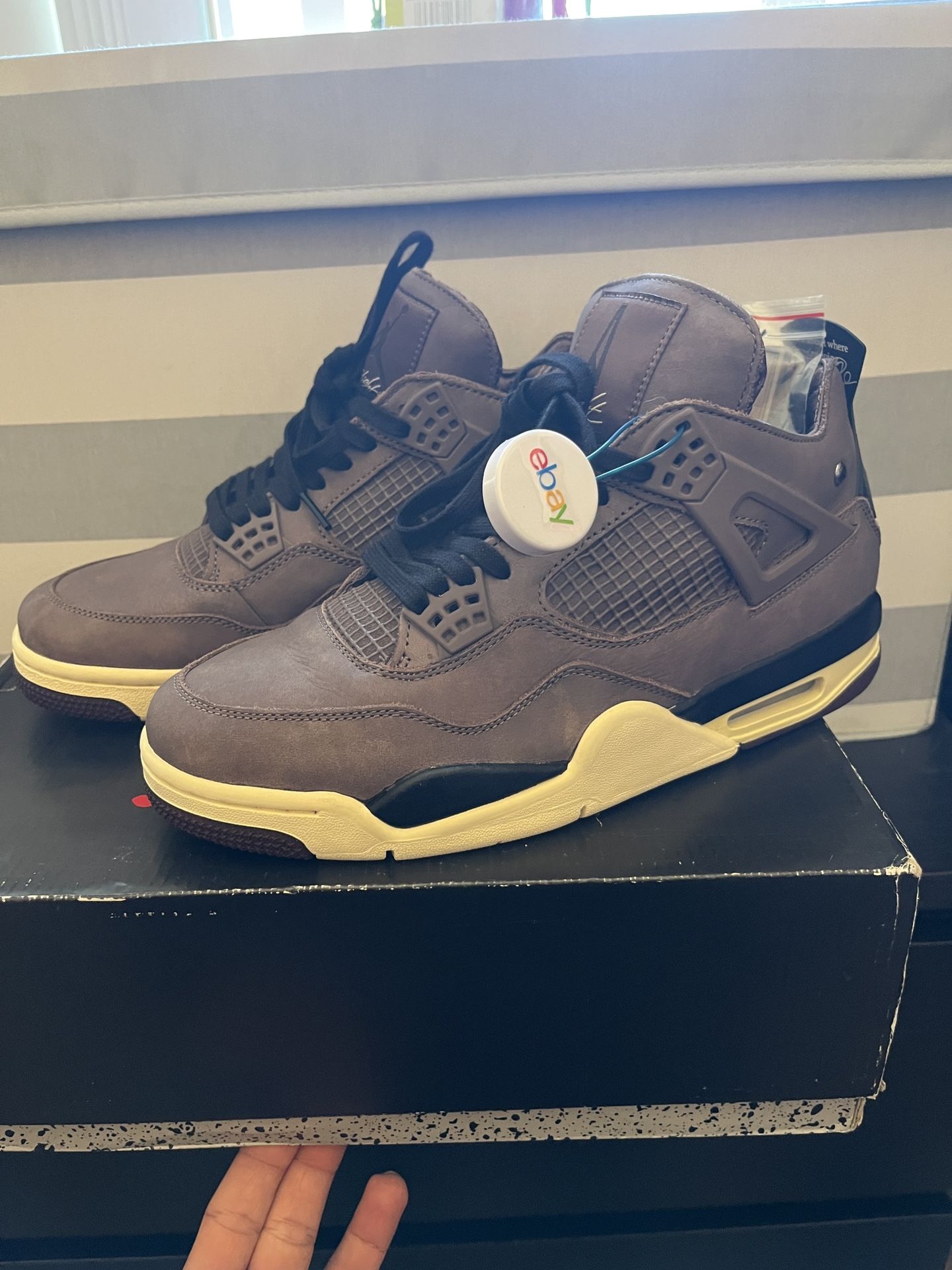 Jordan 4 a ma maniere 9.5 VNDS bought on eBay is authenticated… Comes with black laces and original laces NOT the original BOX!!!! Price firm great condition