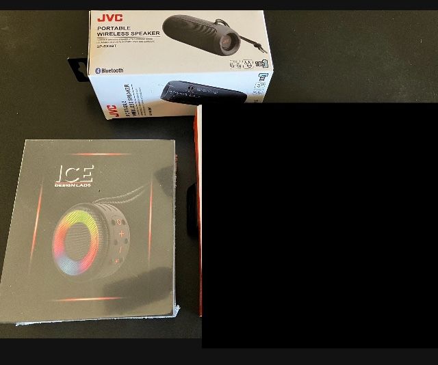 Ice Design Labs speaker $15, JVC wireless speaker $20, See pictures. Manufacturer sealed, brand new. Make offer. For sale individually or have both speakers for $30.