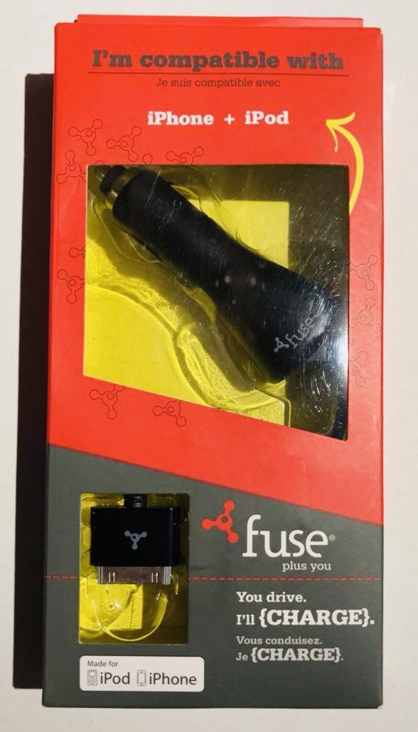 Up for your consideration is a “Fonegear/Fuse Plus You” iPhone and iPod (30 pin) 1A car charger. The charger plugs into car's 12V cigarette lighter adapter to keep your device powered when you are on the go. Additional features include an integrated LED power indicator with replaceable fuse. Brand Name: Fuse Cord Length: 4 ft. Product Type: Cell Phone Charger Number in Package: 1 pk Volts: 12 V Usage: Auto Use Color: Black Material: Plastic For older iPhone and iPod models Made for iPod Touch (1st, 2nd, 3rd and 4th generation), iPod Classic, iPod Nano (3rd, 4th, 5th and 6th generation), iPhone 4, iPhone 3GS. Please follow my account for amazing deals on automotive, home and office accessories and supplies!
