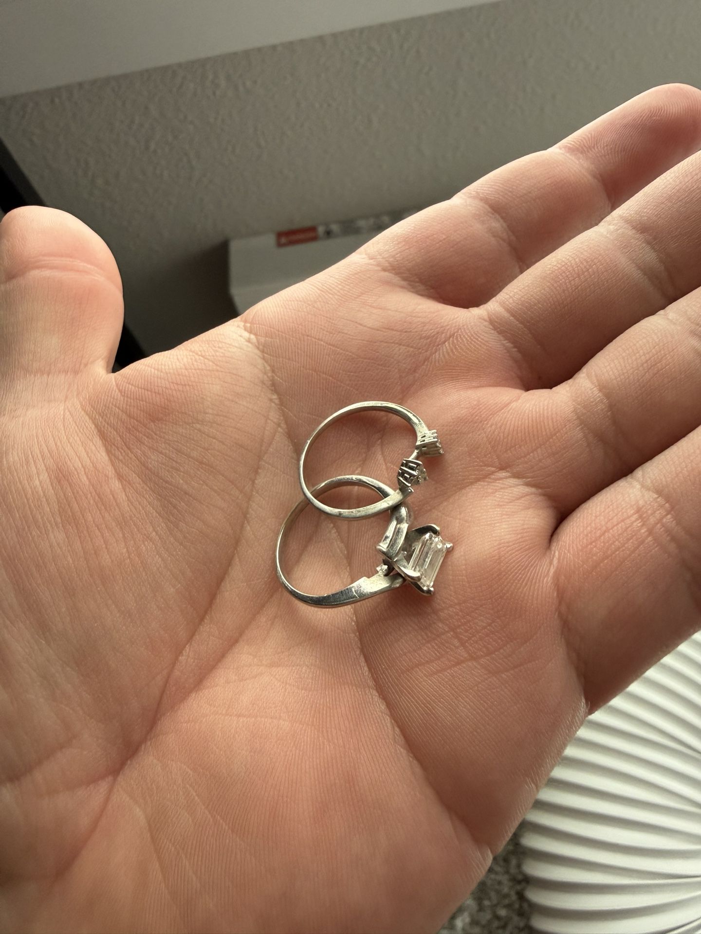 Swirl wedding ring set. Emerald cut lab grown. Very clear diamond. Worn for about a year. Was $3000 new, can see the original listing in photos. OBO.
