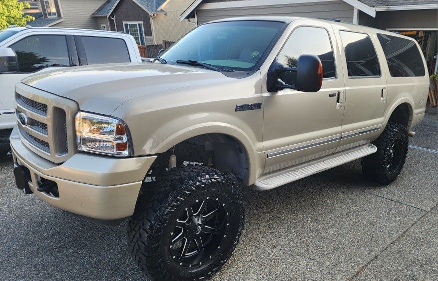 2005 Excursion V10, 4x4, lifted, wheels & tires and exhaust. 232k miles. Everything works great, runs good, shifts good.