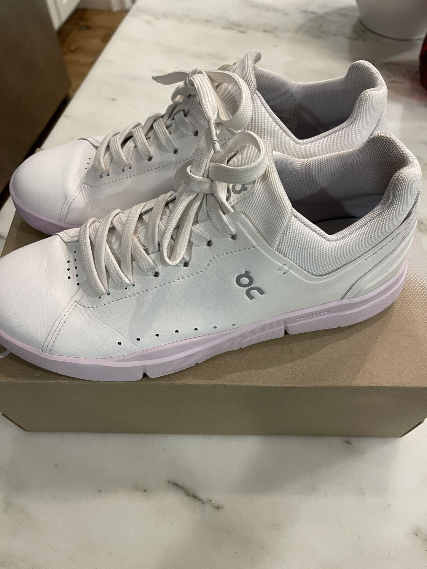 Elevate your everyday style with The Roger Advantage sneakers by On, designed in collaboration with tennis legend Roger Federer. These sleek, minimalist sneakers combine premium craftsmanship with performance technology, making them perfect for casual wear and all-day comfort. Features: ✔ Size: Women’s US 9 (EU 40.5, UK 7) ✔ Color: White with a subtle Lily sole accent ✔ Condition: Lightly worn, excellent condition with minimal signs of use ✔ Design: Inspired by classic tennis shoes with a clean, modern aesthetic ✔ Upper Material: Smooth, high-quality synthetic leather for a premium look and feel ✔ Midsole: CloudTec® cushioning for soft landings and supreme comfort ✔ Outsole: Durable rubber with a unique tread pattern for traction and stability ✔ Lacing: Classic lace-up closure for a secure fit These sneakers are perfect for anyone looking for a versatile, stylish, and ultra-comfortable shoe that can be worn from casual outings to light athletic activities. 📩 Message me if interested! First come, first served