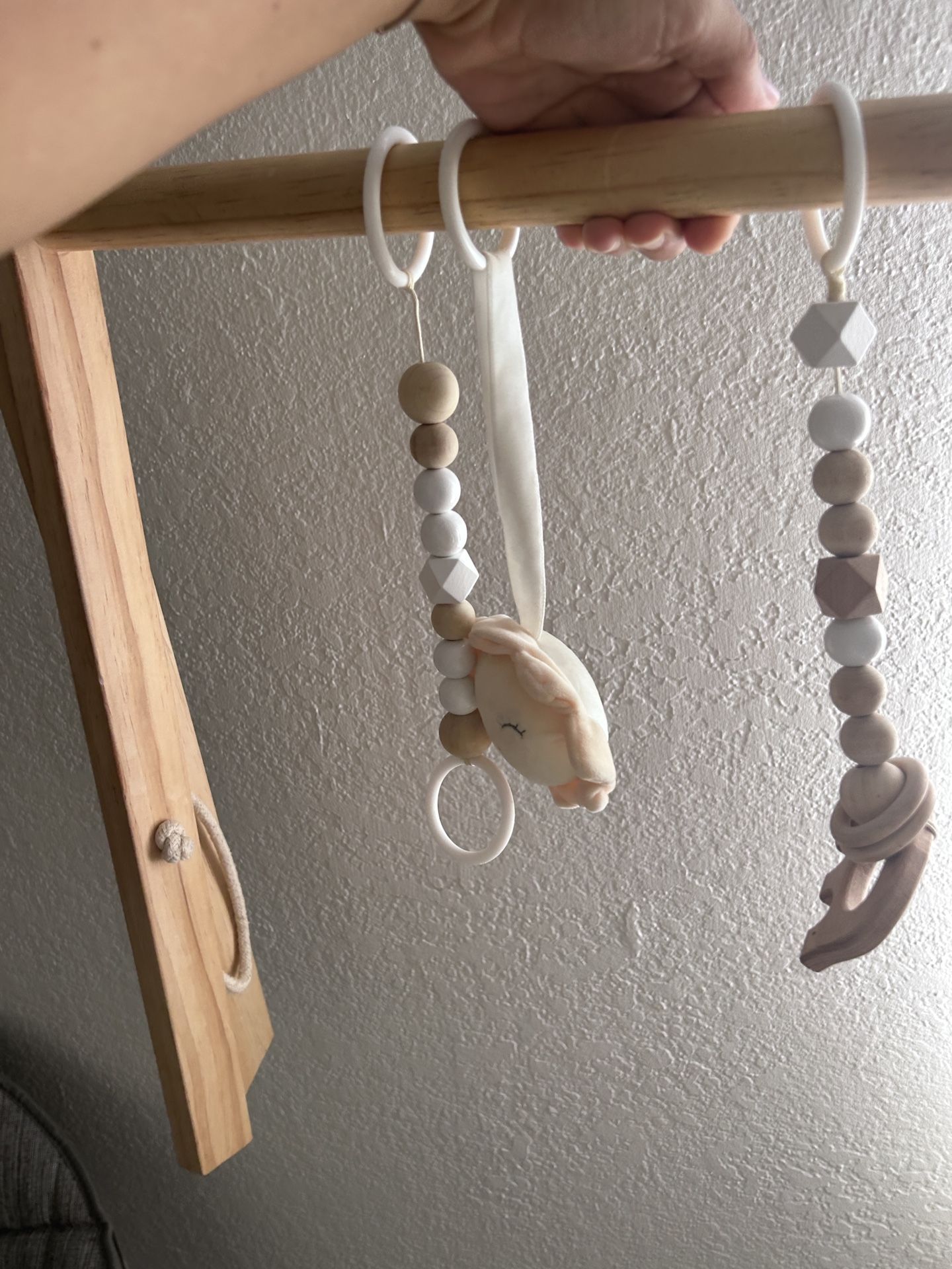 Costway Foldable Wooden Baby Gym with 3 Wooden Teething Toys Hanging Bar Natural