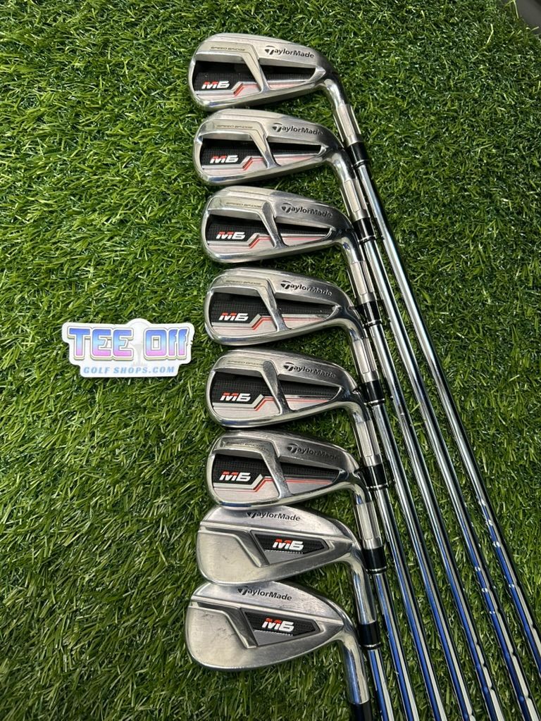 TaylorMade M6 Irons Set 5-SW TT S300 Stiff Flex GP Grips RH Pre-Owned Golf Clubs for Men, Ladies, and Juniors. Drivers, Putters, Fairway Woods, Hybrids, Iron Sets, Wedges, & Bags Available on our website! Nationwide Shipping Available (thru our website) or Local Pickup in Chino, CA