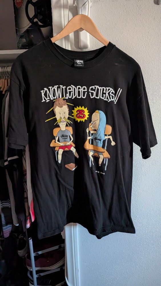 Stussy Beavis & Butthead Collab (L). Knowledge Sucks.