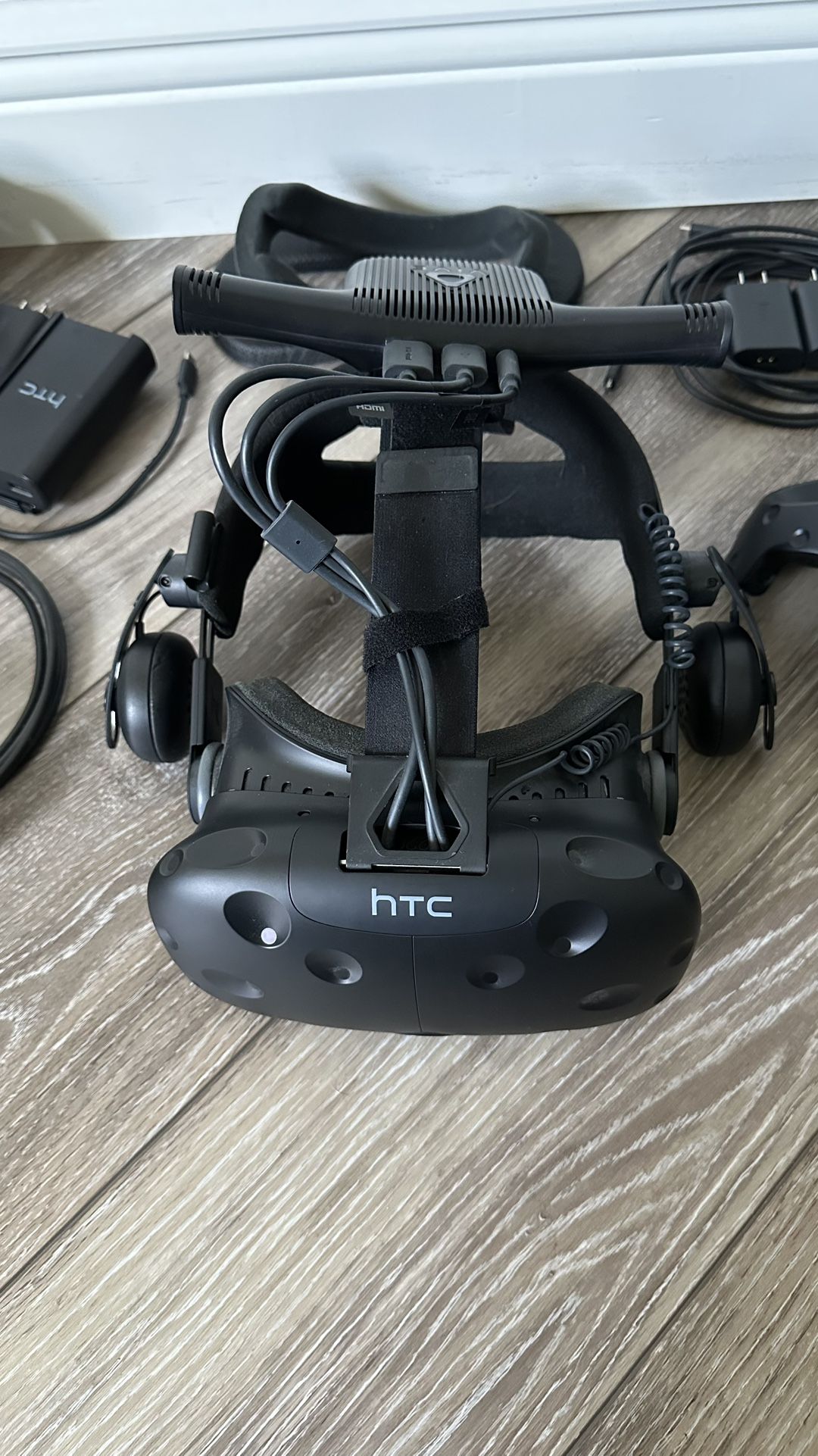 Selling an HTC Vive VR headset with all original pieces and parts, as well as the wireless adapter for untethered play. Includes: HTC Vive VR Headset Controllers + chargers Lighthouses 3-in-1 direct connect cable (~18’) + link box Wireless Adapter + Receiver + PCIe card Power Bank + charger Feel free to ask me any questions about the headset or wireless adapter if interested.
