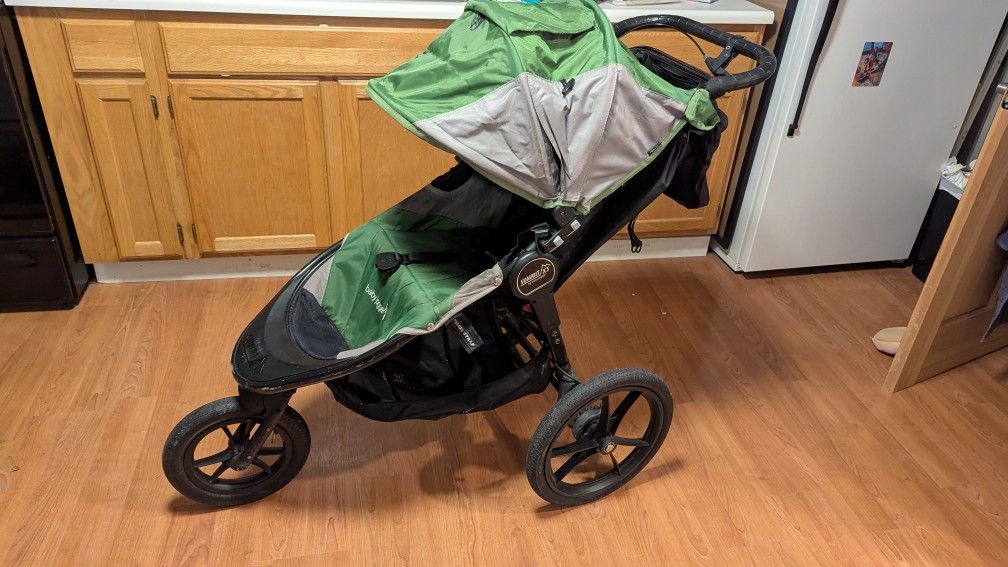 Solid stroller. Very comfy and very adjustable for the kids. Holds my 2-year-old and my 4-year-old very well and it's easy to switch between the two. It isn't the greatest for running, hence the low price, but excellent for taking on a trail with bumps. It has two brakes and great shocks. Summit x3 by baby jogger