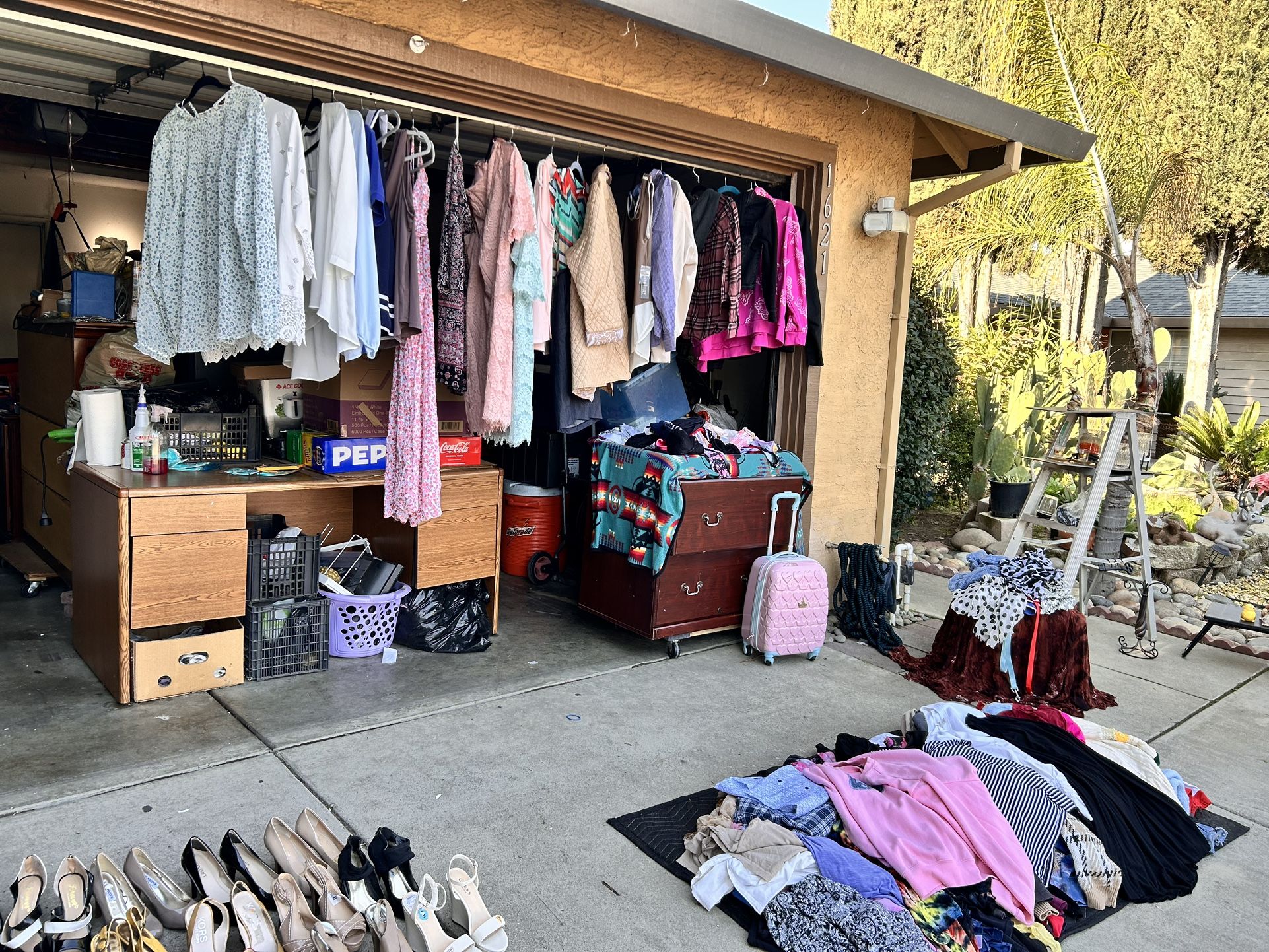Huge garage sale at 1621 Dalby Court, Modesto, CA 95358. Today’s the last day people I have a bin sale going on right now. Everything in these bins are three dollars each. Everything is brand new with tags on them women’s clothing and men’s clothing brand new come get it while it last three dollars an item or 4 items for 10 bucks.