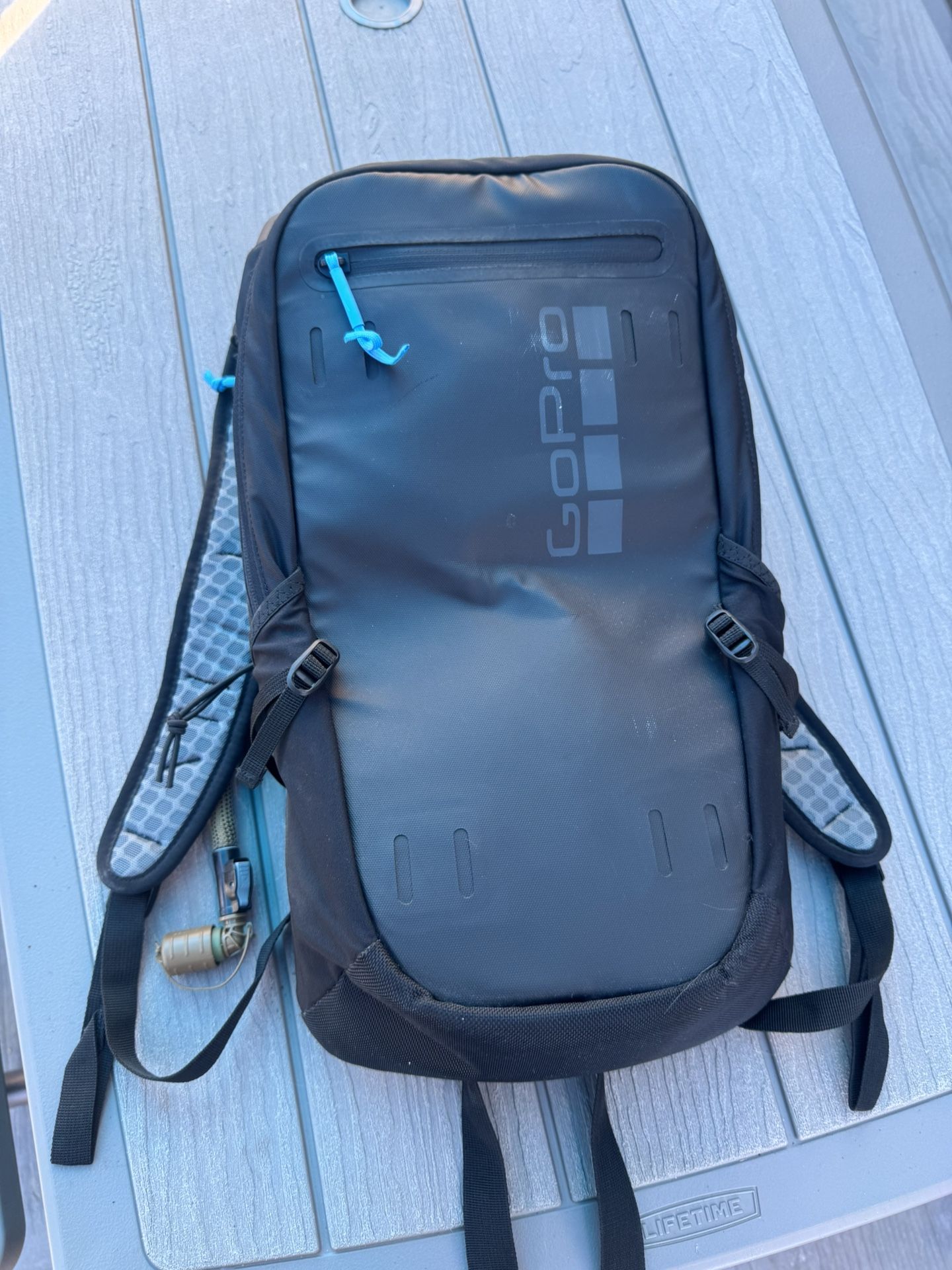 GoPro backpack in great condition only used a couple times. Has a brand new camel pack in it that has not been used yet and it comes with the chest piece to hold a GoPro camera as well.