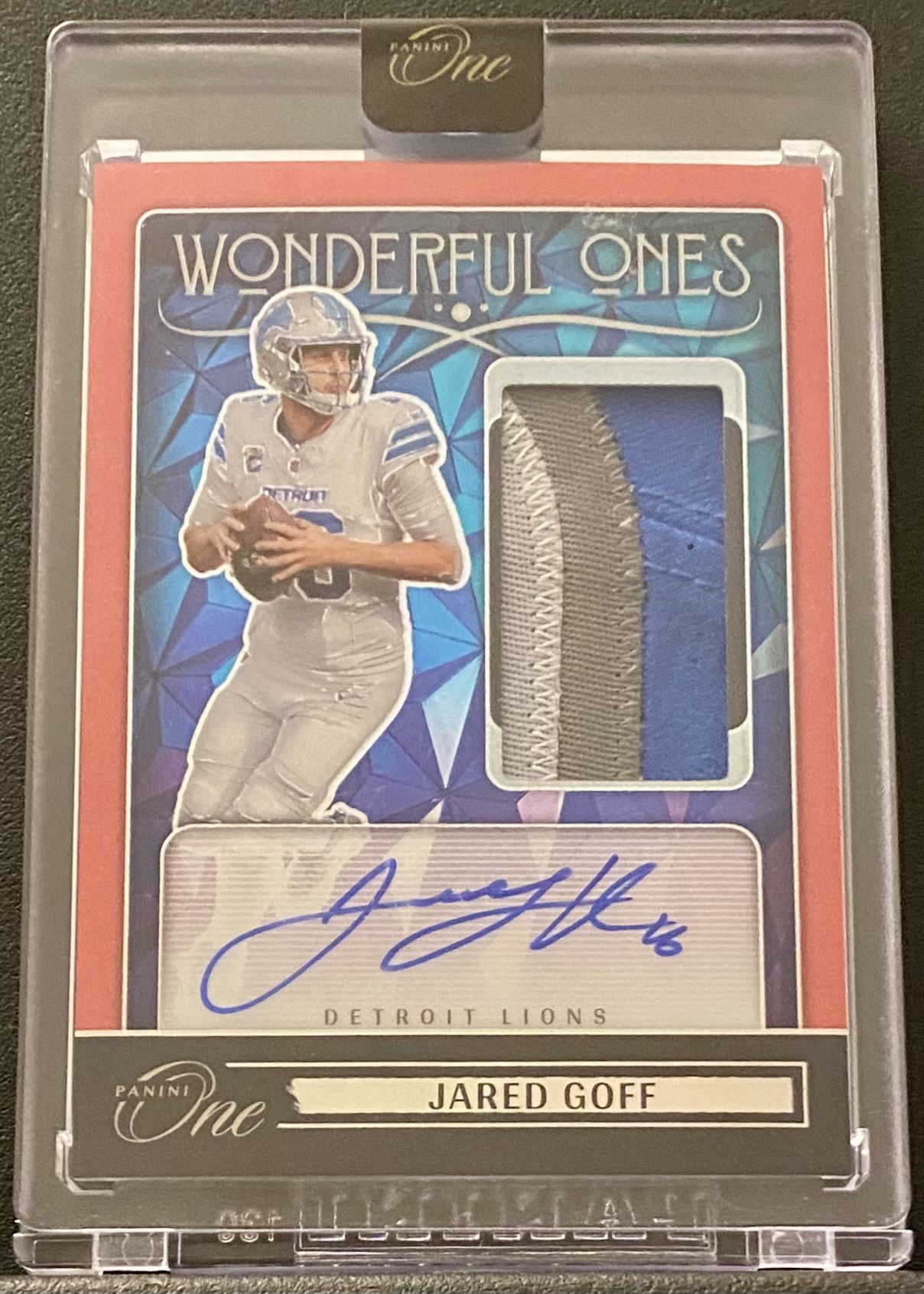 2024 Panini One Jared Goff Wonderful Ones Autograph Red #50/60 3 COLOR PATCH