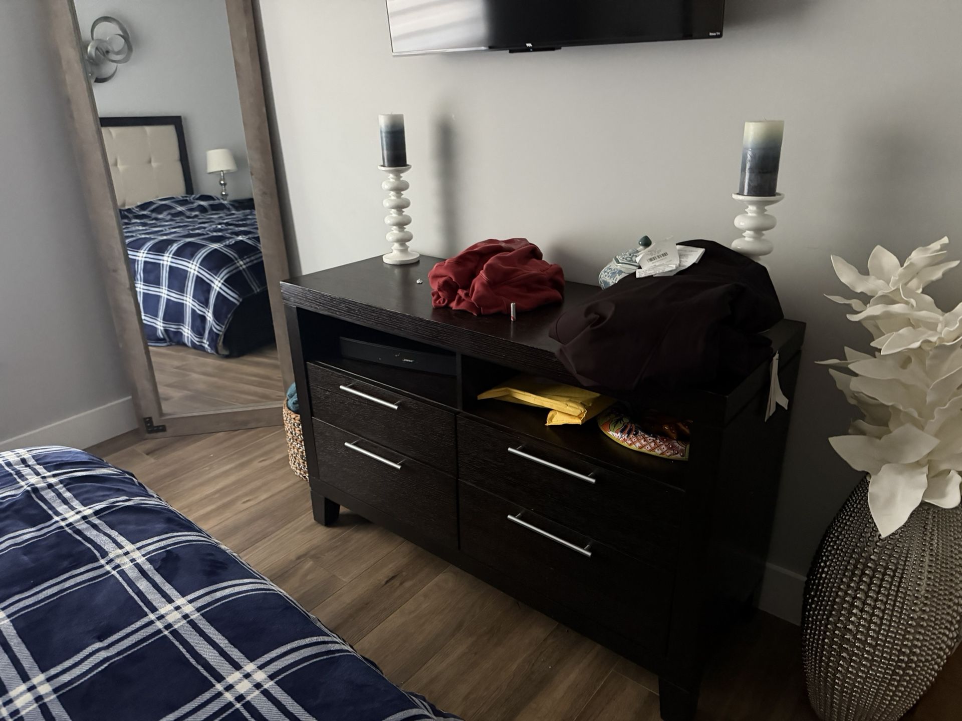 Free furniture includes 2 nightstand, bed frame, and tv stand. *Not included mattress and decor.