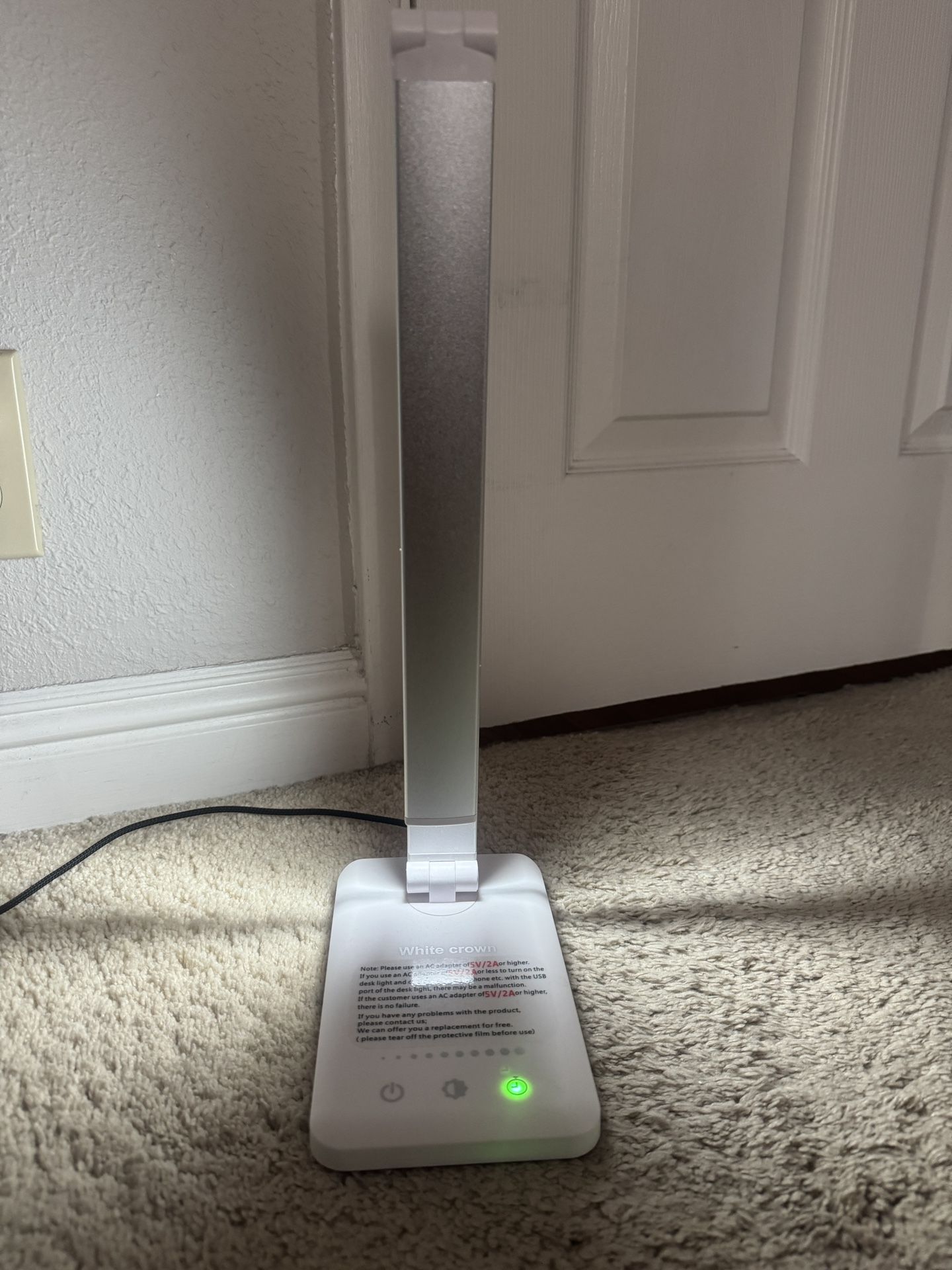 Upgrade your workspace or study setup with this White Crown LED Desk Lamp π‘ β Features 5 brightness levels β 3 color temperature modes (Warm, Cool, Natural) β USB charging port for phones π± β Touch control panel β Foldable for compact storage β Perfect for office, dorm, or bedside Used β Excellent working condition βοΈ Cord included π