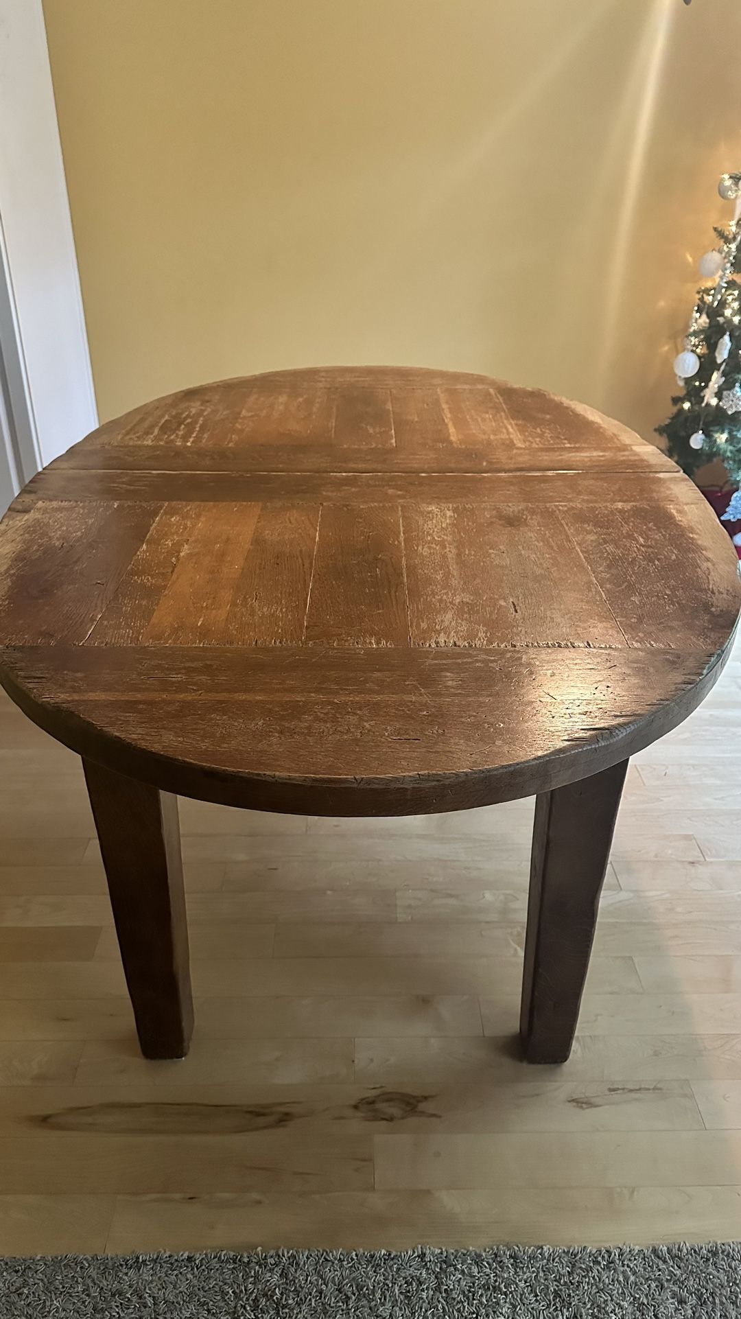 Solid, rustic dining table with a convenient extension—perfect for everyday meals and hosting guests. Strong, well-built, and in great condition. Dimensions: • 29” x 43” x 70” • 29” x 43” x 88” (with extension)