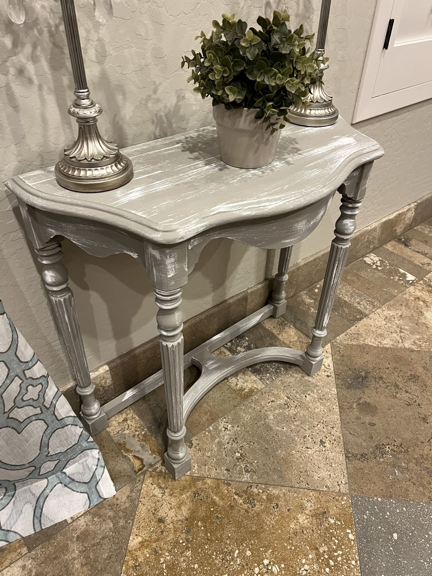 White and beige end table Pick up in store at: The Tattered Nest-11649 N Cave Creek Rd 85020 Booth #32 28in x 13in x 26in