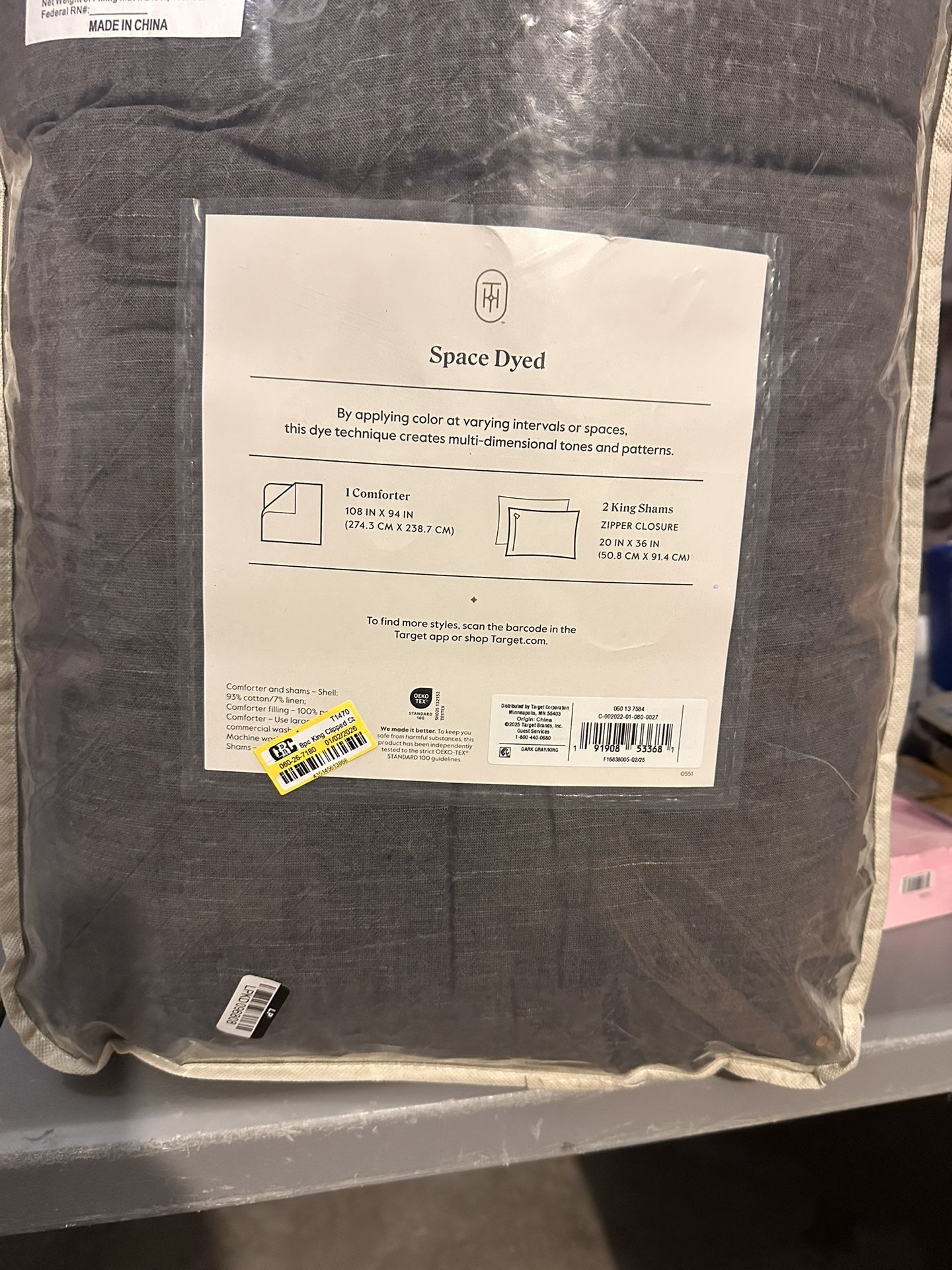Retail is $110 at target Brand new -ripped bag King size comforter with sham set , dark gray color $50