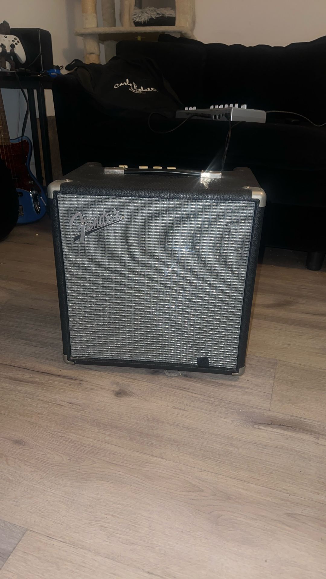 Fender Rumble 25 bass combo amp in great condition. Compact and reliable with clean, punchy Fender tone. Fully functional and well cared for, with minimal cosmetic wear. • 25 watts RMS • 8” Fender Special Design speaker • Clean tone only • Perfect for home practice or small rehearsals • Headphone output for silent practice Tested and ready to use. Local pickup only. Can deliver in the LA area for a small fee