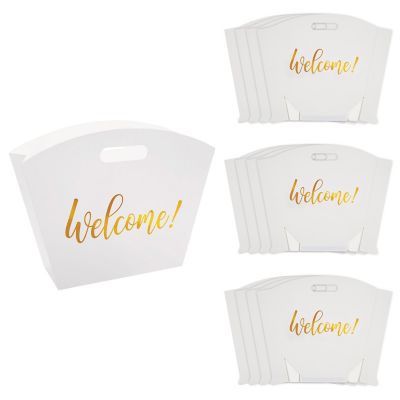 Large Gold Foil Welcome Cardstock Gift Bags with Cutout Handle - 12 Pc. X 6 72 total 14” x 4” X 11”