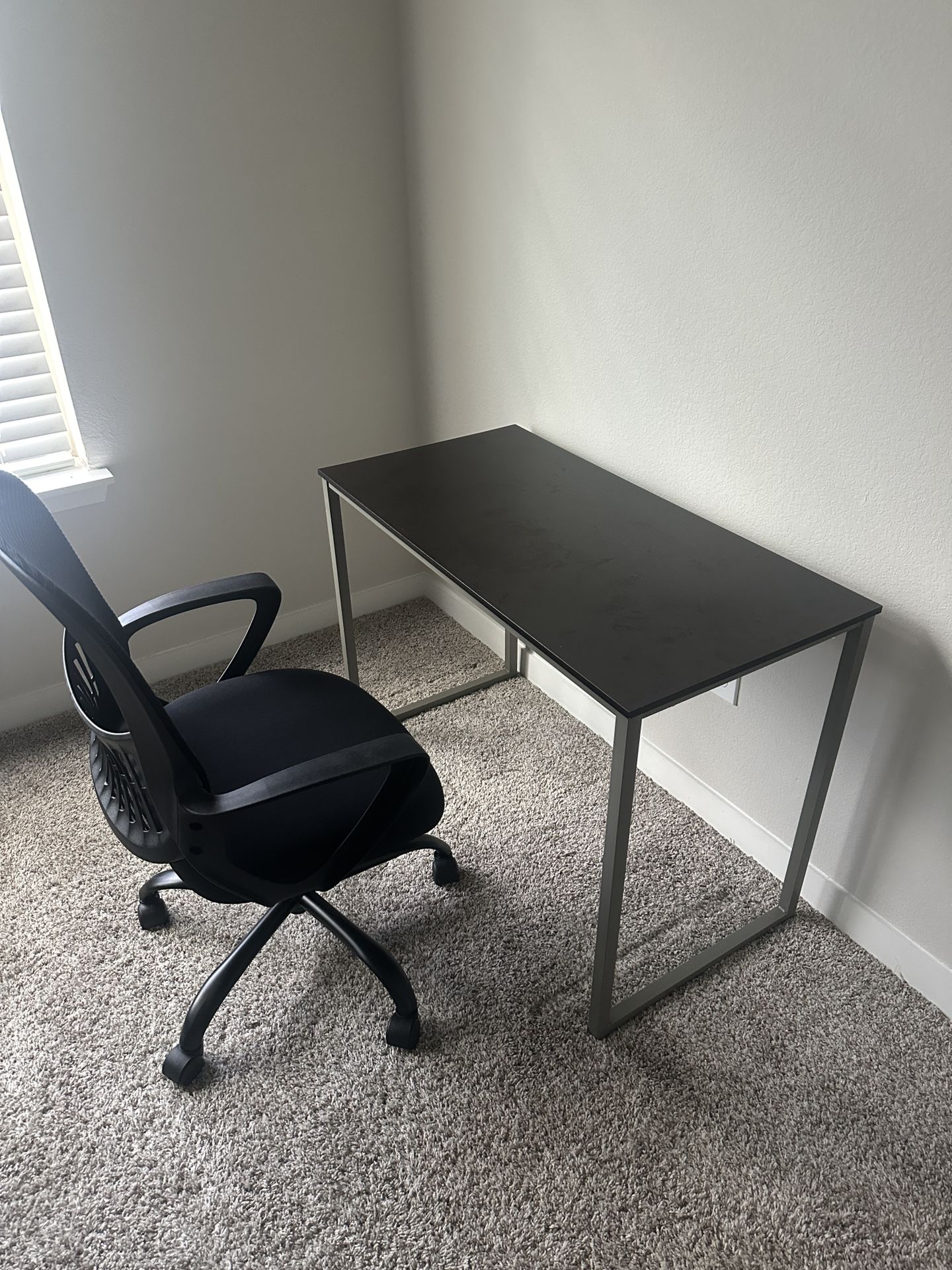Desk and chair sold together as a set. • Desk: stable and clean • Chair: comfortable and in good condition • Both are used but well maintained • Originally purchased for $65 (desk) and $50 (chair) Selling due to moving. Pickup only. Cash or Zelle accepted. Price: $25 Message me if interested!