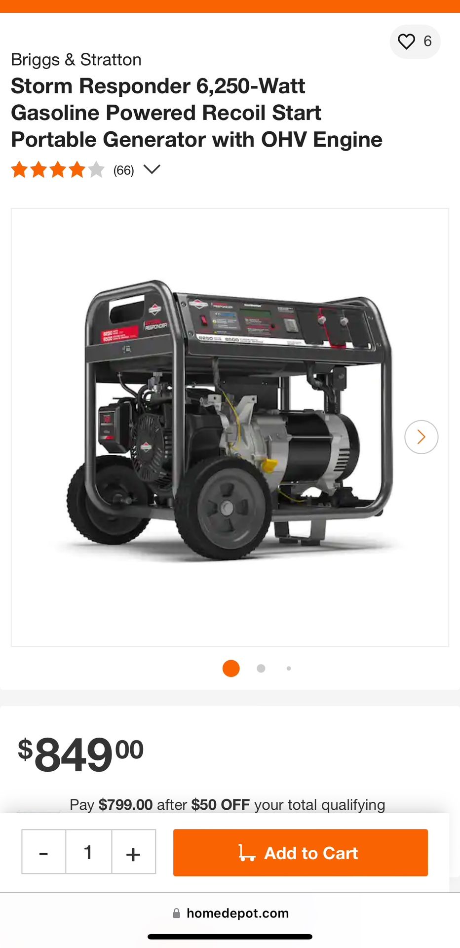 Briggs & Stratton Storm Responder 6,250-Watt Gasoline Powered Recoil Start Portable Generator with OHV Engine Brand new from Home Depot (not in hand as order will be placed upon a 25% deposit)