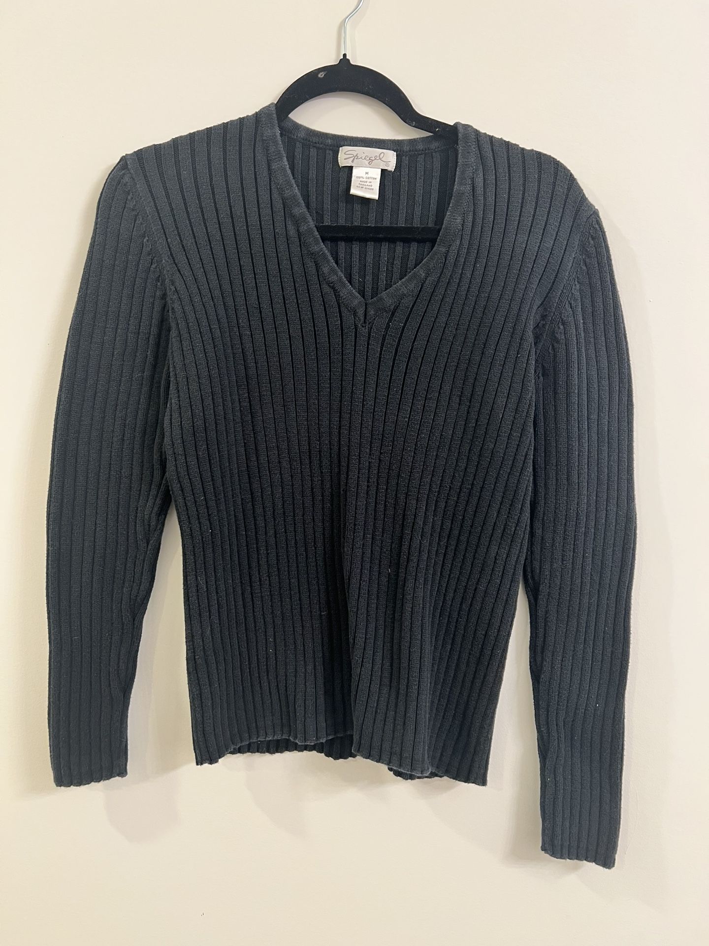 Small Black Ribbed V-neck 100% cotton long sleeve brand Spiegel
