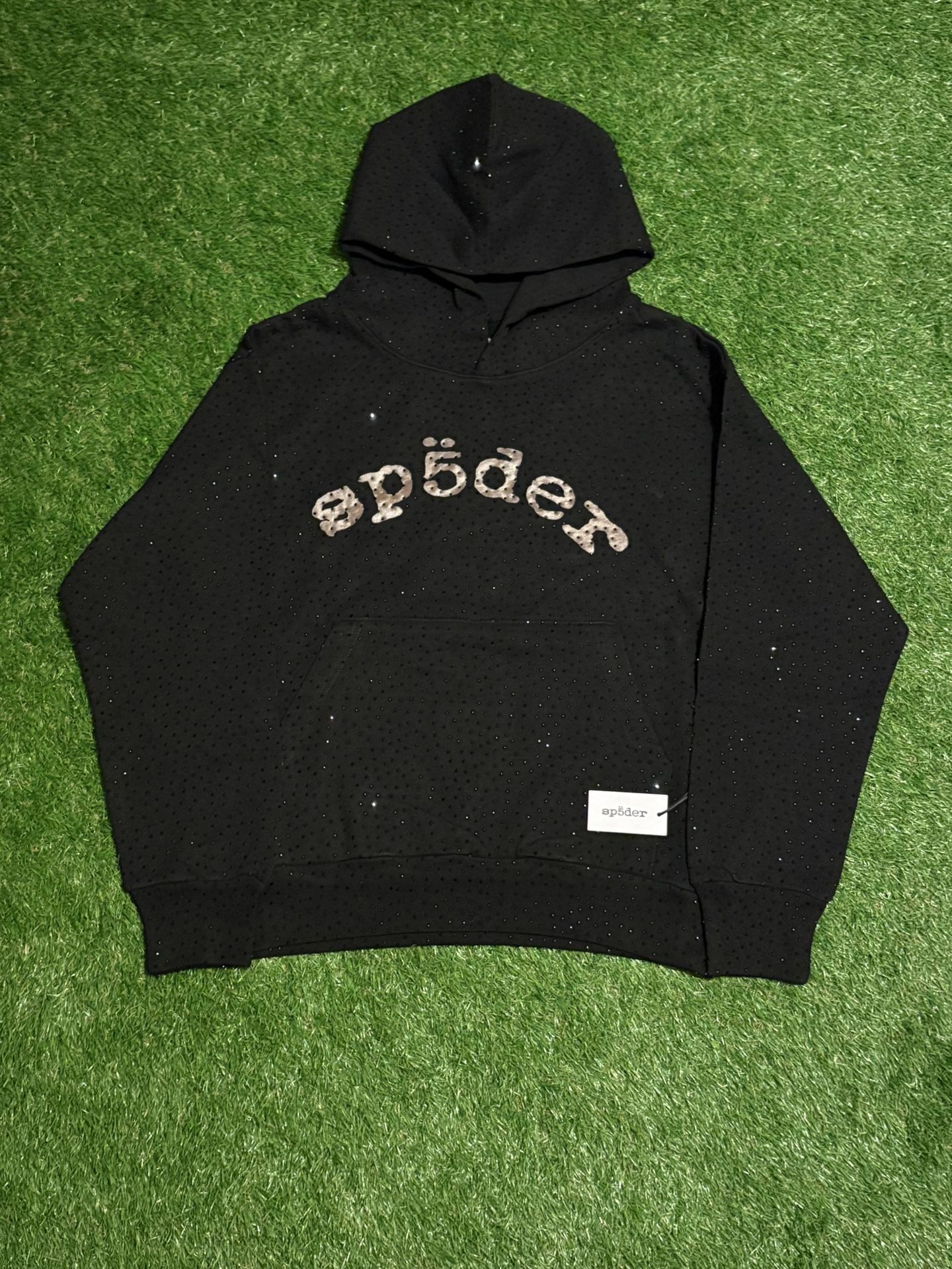 ‼️Brand New Black Rhinestone Sp5der Hoodie‼️ 📏Size: Large ⭐️With Bag And Tags⭐️ 📲Dm Any Questions ✅Ask For Other Sizes And Styles
