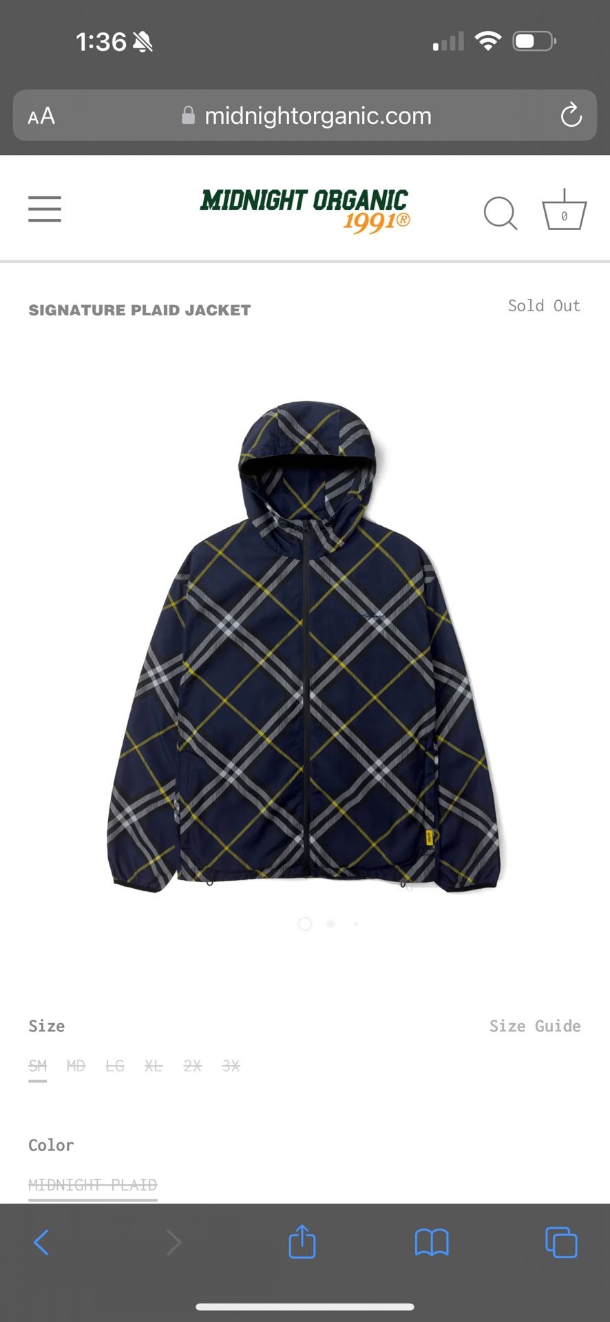 Midnight Organic Plaid Jacket Windbreaker Size LARGE