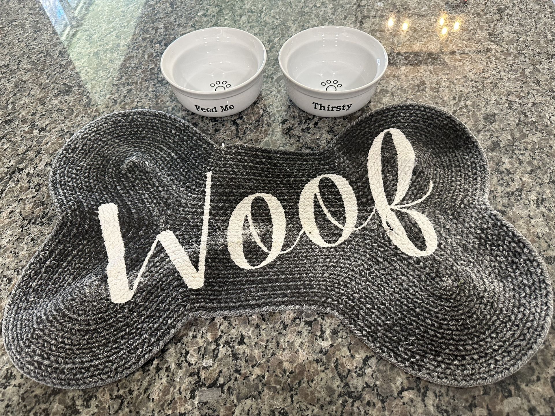 Food and water bowl with mat. $10 for all. Cash only. Meet in Burleson.