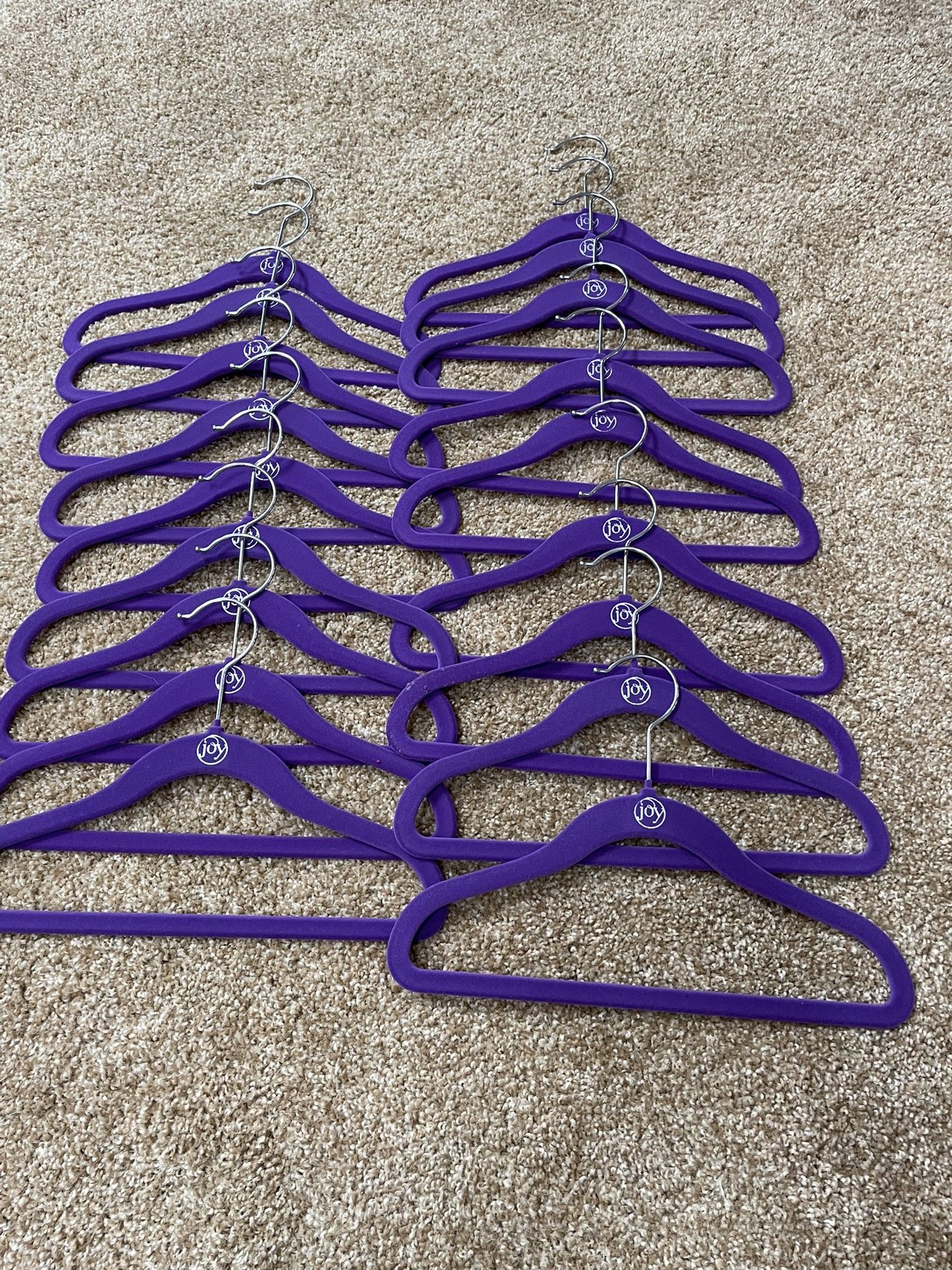 Excellent condition. Great kids hangers. The clothes do not slide off of the hangers.