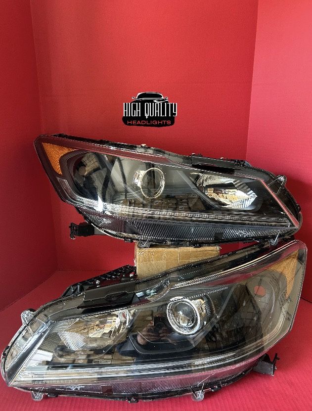 Set of headlights for a Honda Accord black housing projector amber OE style 2016 and 2017