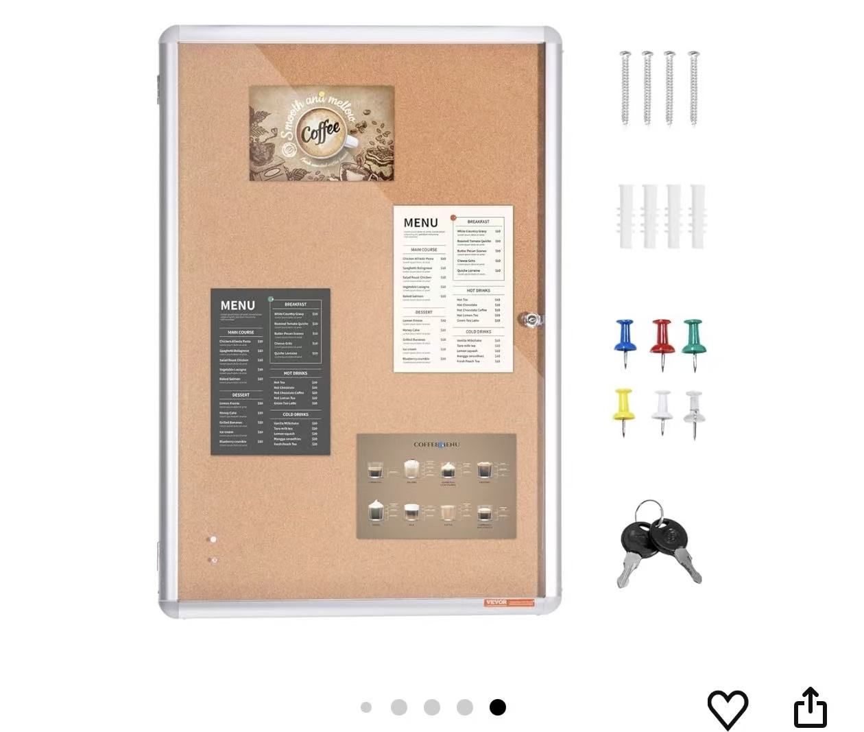 36"x24" Enclosed Cork Board with Aluminum Frame – Lockable Bulletin Board with Acrylic Door & 2 Keys – Weather-Resistant Wall Display Case for School, Home, Office. 74*