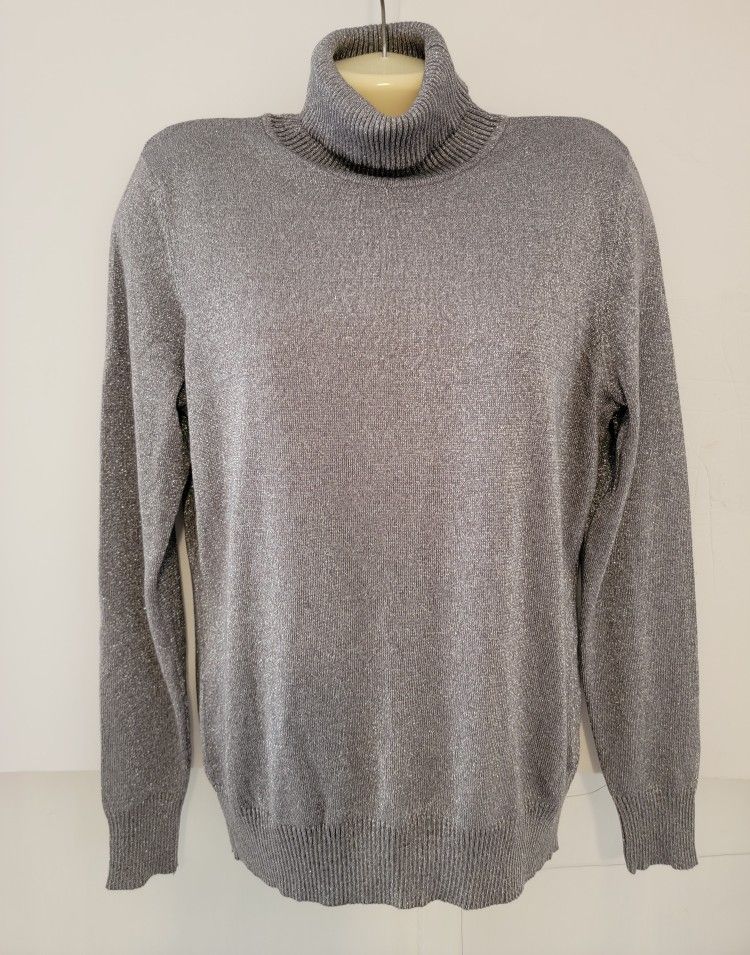 Joseph A SILVER Metallic Sweater Thin Weight LARGE Ratin Blend Long Sleeve. Measurements: Chest: 41 inches Length: 24.5 inches Sleeve: 25.5 inches Smokefree Pet Friendly Home