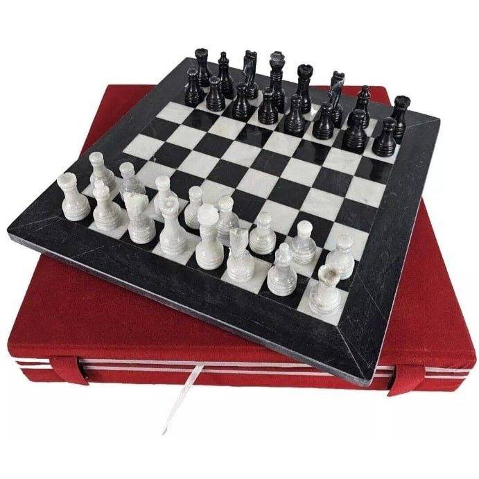 Marble chess set with storage black and white