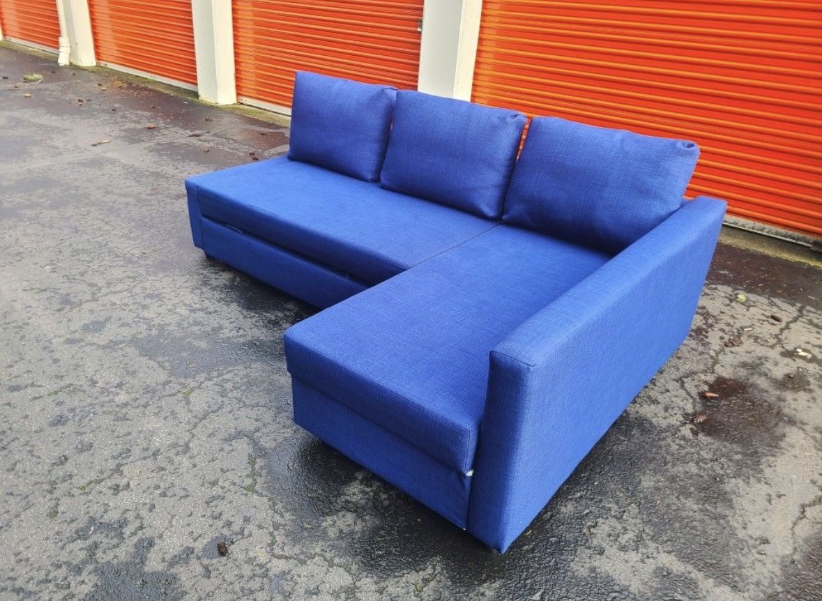Used for about two months No rips, no stains. Non smoking home with no animals. It’s a beautiful couch, bottom piece slides out as foot rest, and the end lifts up for storage. I’m moving and changing colors. i want it gone quick so I’m asking $150. It does break down into smaller pieces very easy the longest piece(the back) is a little over 6ft long so bring a truck or decent sized suv.