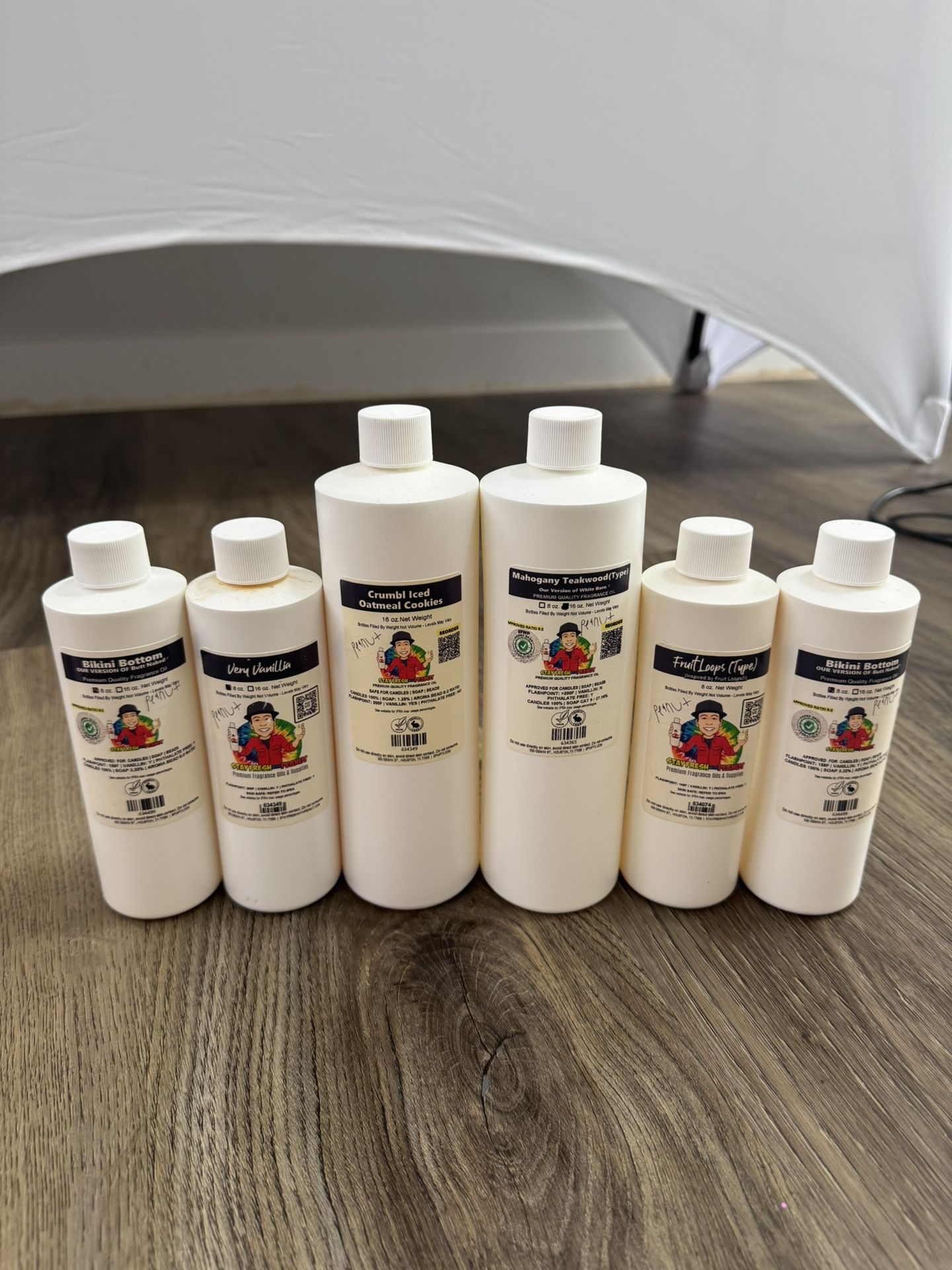 16 scents 2 fruit loops 3 bikini bottom 1 pumpkin pecan waffle 1 spiced gingerbread 1 pumpkin pie 1 crumble iced oatmeal cookie 1 very vanilla 1 strawberry pound cake 1 “it’s showtime” beetlejuice inspired 1 mahogany teakwood 1 endless weekend 1 merlot 1 into the night Most are 3/4 of the way full, if not more
