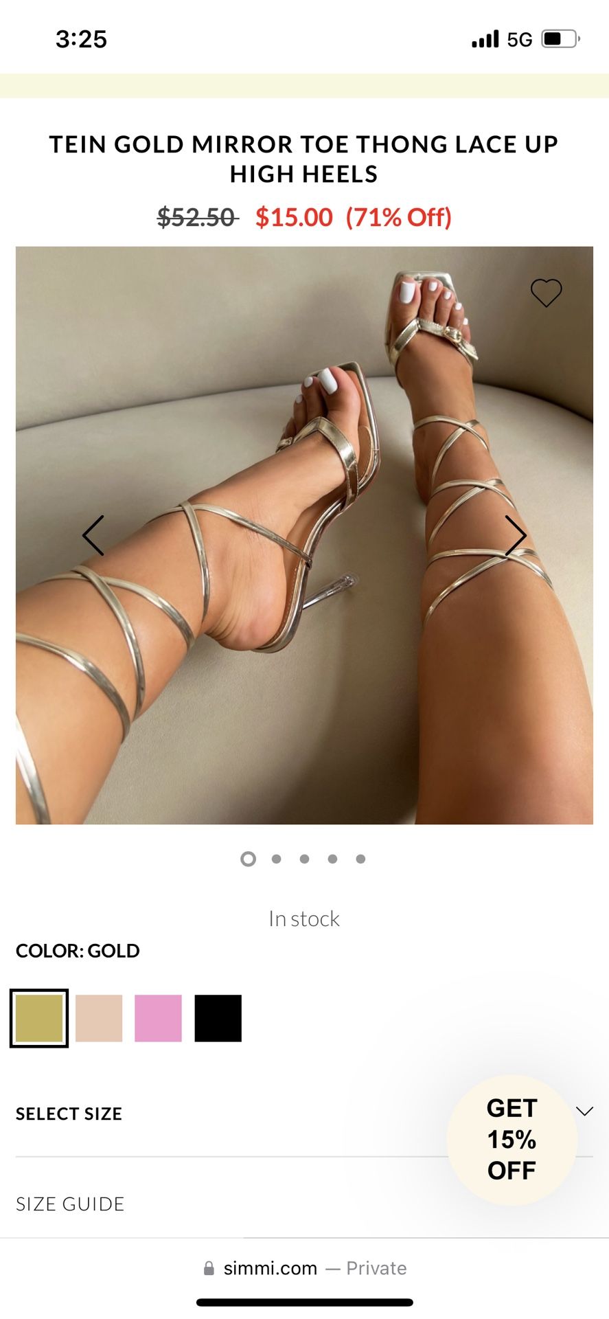 Metallic Gold Thong High Heels Size 7