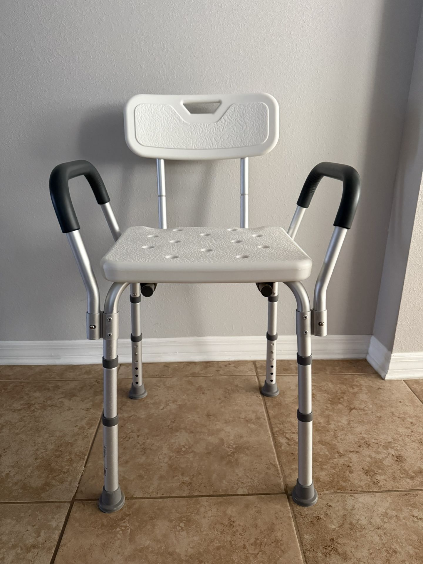 Height is adjustable excellent condition used a few times after surgery recovery.