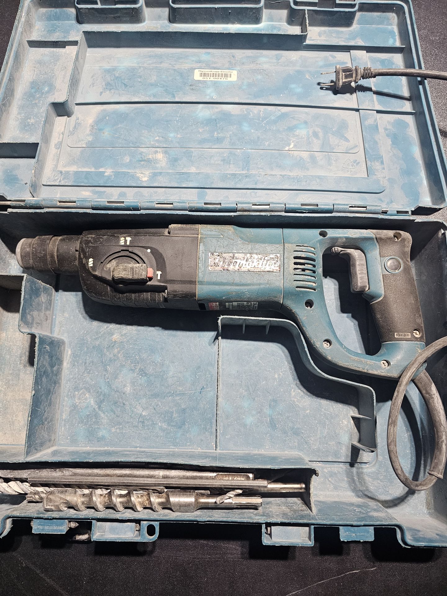 The Makita HR2455 is a rotary hammer with a 7.0 amp motor, featuring 3-mode operation for drilling, hammering, and chiseling, and accepts SDS-PLUS bits. It has a maximum drilling capacity of 1 inch (25 mm) in concrete, 1/2 inch (13 mm) in steel, and 1-1/4 inch (32 mm) in wood.