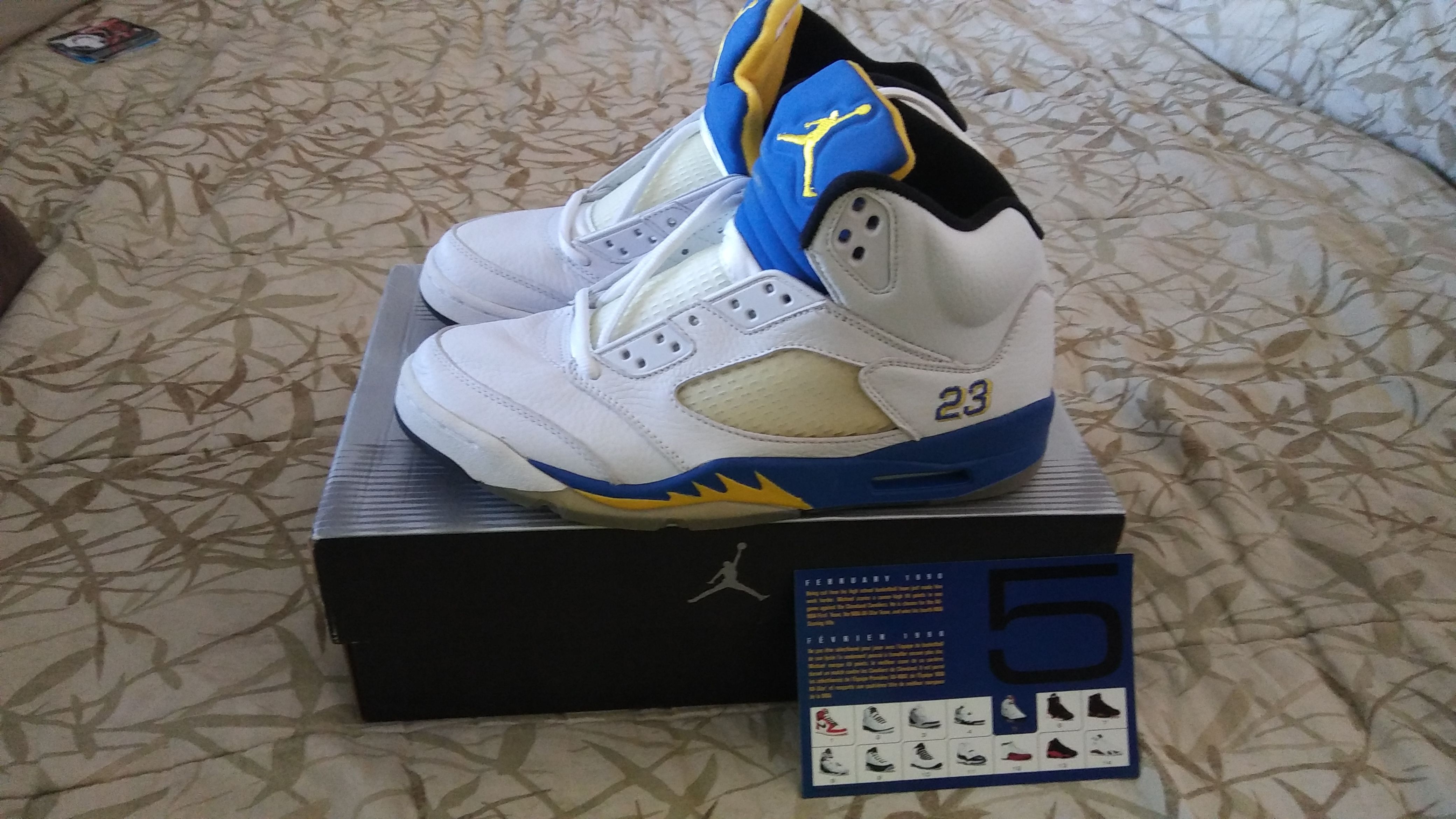ATTENTION COLLECTORS!! 1999 Jordan Retro V 5 "Laney" White / Royal Varsity - Maize. Size 9. NEW IN BOX!! $250. Still have original receipt from 5/2000.