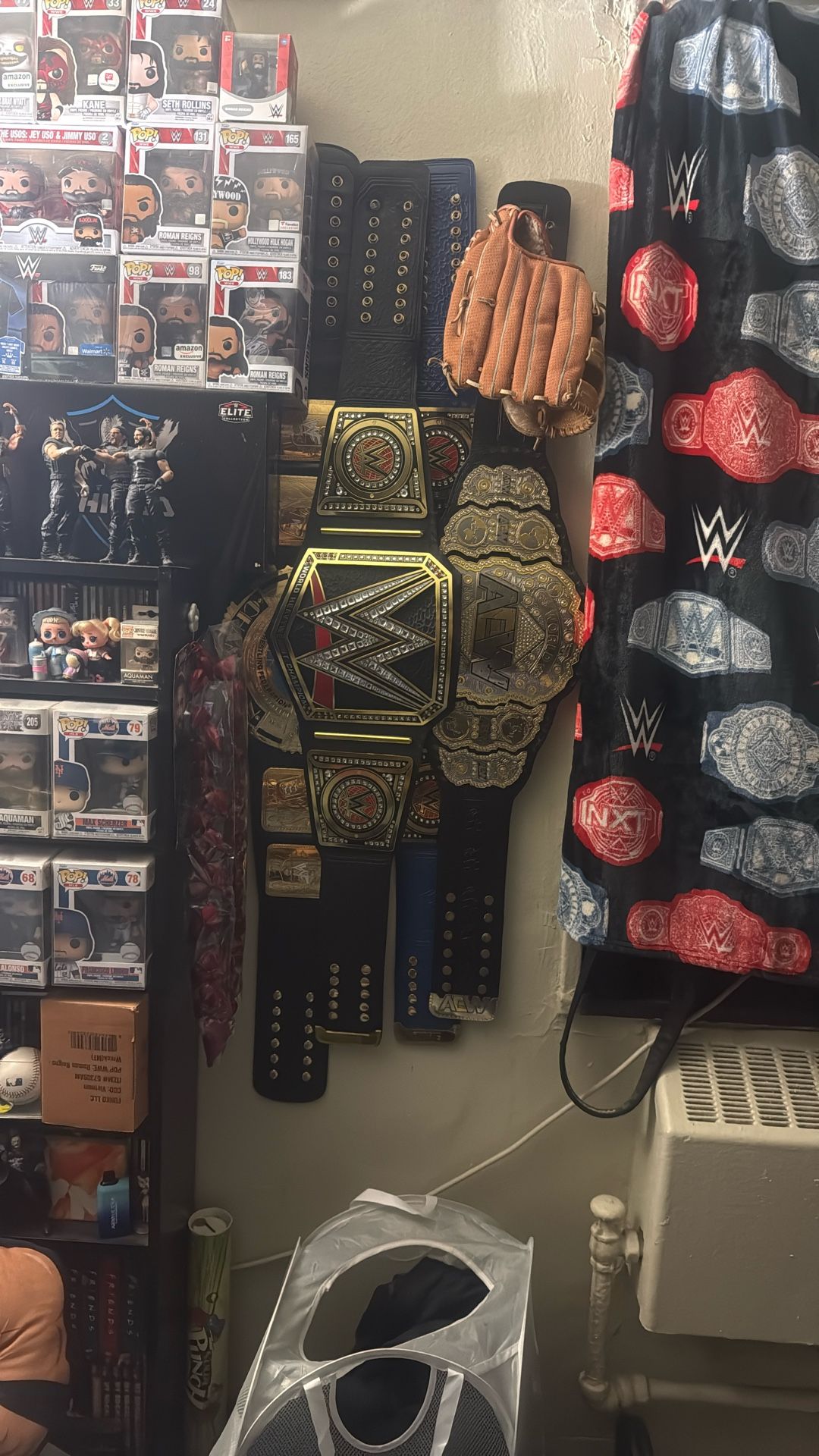 Handmade from overseas by a friend of mine only selling the AEW title and maybe one of the WWE championships not the one all the way on the left. I’m only selling the heavyweight championship and the universal championship and AEW.