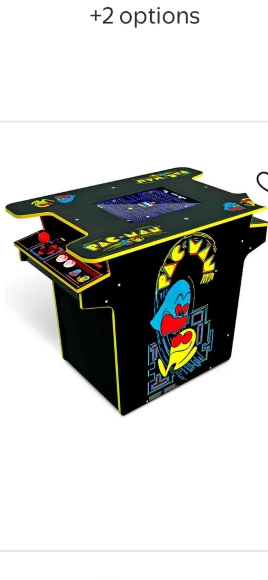 PAC MAN lovers .. this won’t disappoint you. Sit down and play all day long. 12 retro games also installed. This was used 3-4X. Good condition and ready for a new home.
