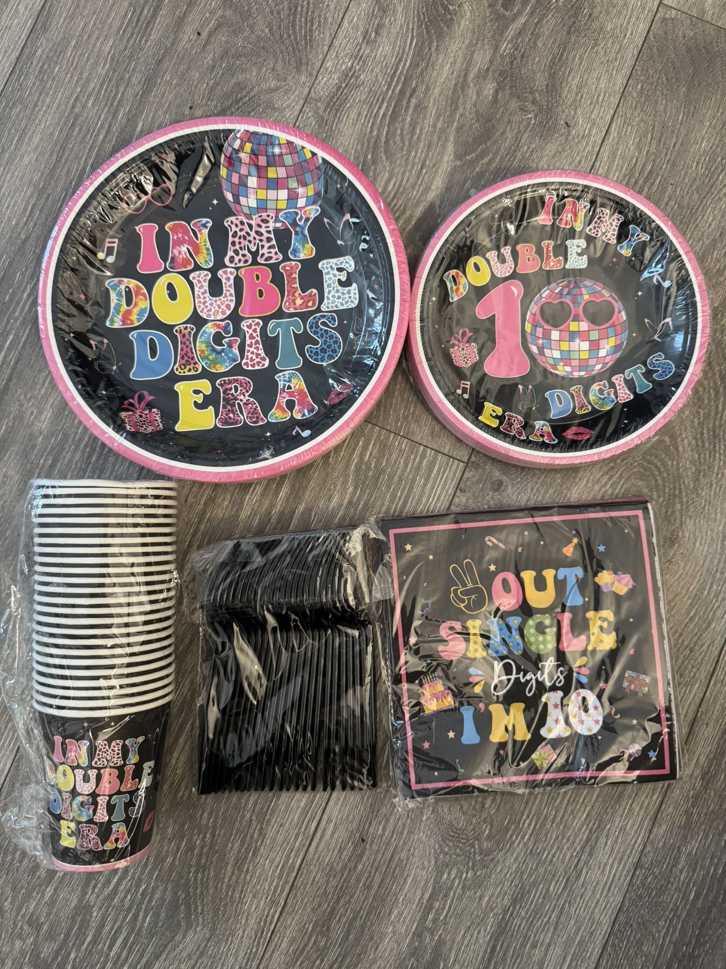 120pcs 10th Birthday Plates and Napkins for Girl Out Single Digits Party Supplies 10 Year Old Happy Birthday Paper Cup Party Supplies Serve 24 Guest. G 【What You Will Get】You’ll get 120pcs 10th birthday plates and napkins including 24pcs 9” dinner plates, 24pcs 9” dessert plates, 24pcs paper cups, 24pcs 13”napkins, serves up to 24 guests and is perfect for your 10th birthday decorations needs. 【10th Birthday Design】 10th birthday party supplies for girl combines pink, blue, yellow and black colors, perfectly highlighting the bright colors and making people's eyes shine; the happy 10th birthday plates and napkins, tablecloths and other party supplies are printed with Out Single Digits I'm 10 and Happy 10th Birthday, which adds a cheerful birthday atmosphere and allows you to spend a perfect birthday party with your family and friends. 【High Quality Material】 10 years old birthday party supplies are made of high-quality paper material, durable and sturdy, enough to accommodate your favorite party food. Exquisite printing and clear patterns provide you with the best dining experience. 【Save Your Time】 Out single digits party supplies makes after party clean up a breeze, just throw them away when you're done using them, giving you more time to enjoy the party with family and friends! 【Widely Applications】10 years old birthday plates and napkins are beautiful birthday decorations for 10 year old girls and can be used for single digit I'm 10 theme parties or double digit I'm 10 theme parties. For any occasion and formal event, these 10th birthday plates and napkins are sure to make the perfect impression on your guests and make great birthday memories.