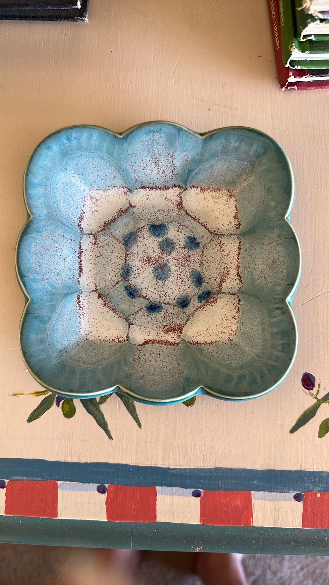 Beautiful small plate by Colin Hatfield, a remarkable pottery designer. I am including a nice wooden bowl as well, see last picture.