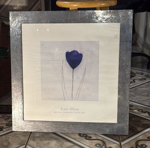 Scott Olson Art Print - Framed Blue Tulip, 23x23 inches