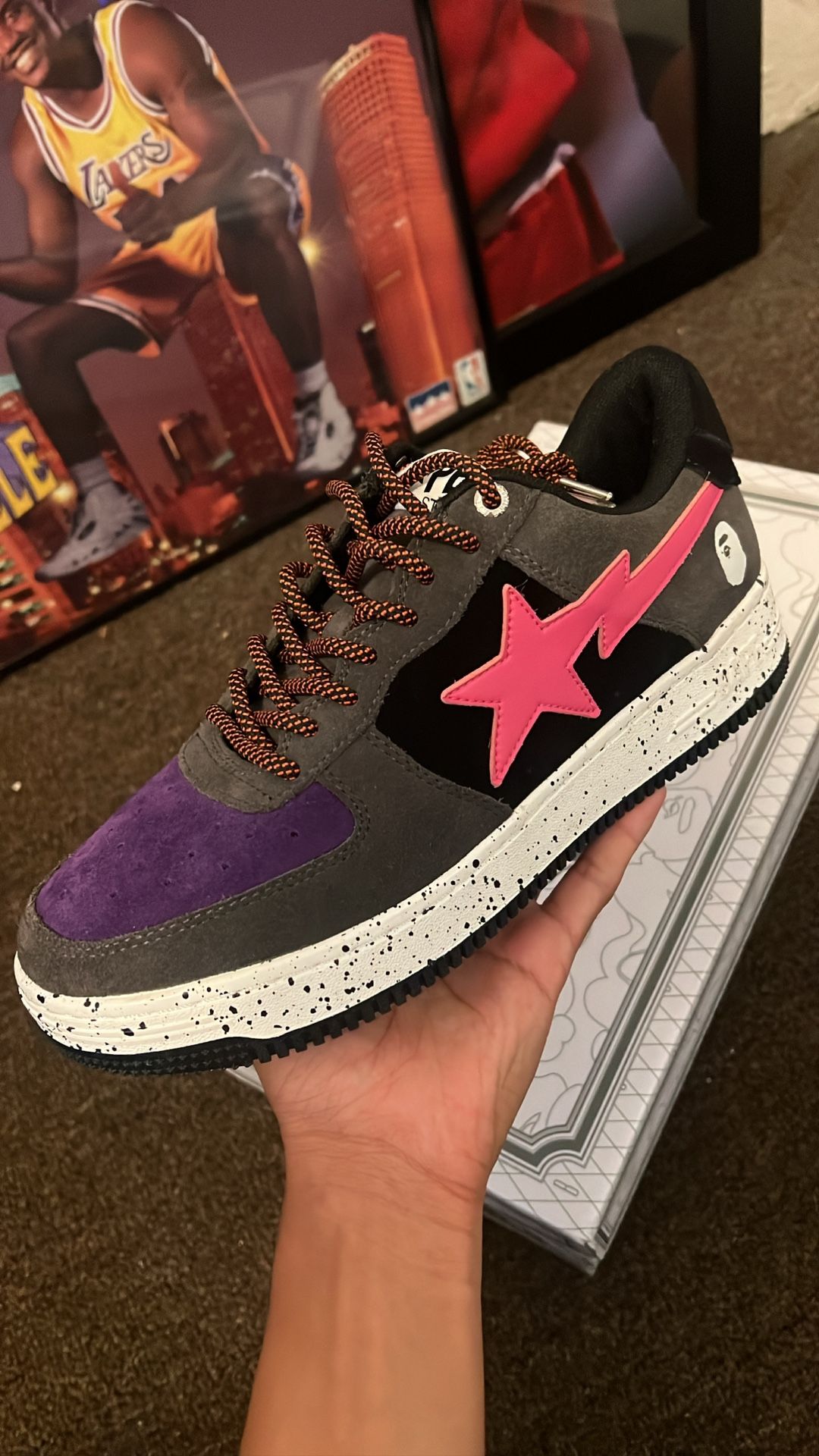 Bape-sta Purple / Grey suede Paint splatter Sole Pink Star ( Super fire Color-way ) Size 8.5 Condition : Brand New $200 OBO Feel free to msg me any questions ! Lowballers will be ignored