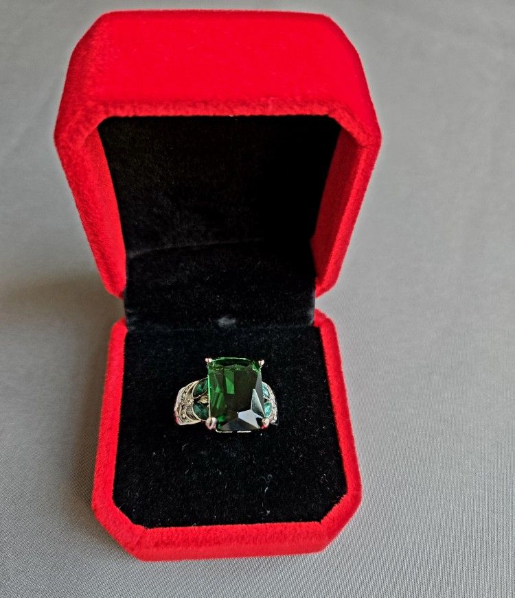 1pc Green Glass Gemstone Emerald New! Size 7 or 8