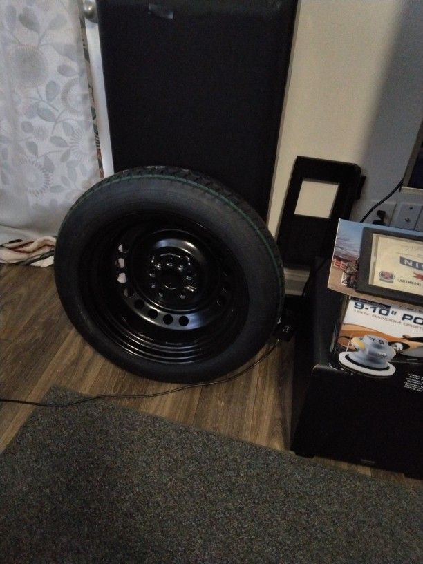 New spare tire for Toyota Camry ready for somebody who needs a new 1.Ready at a cheap price.