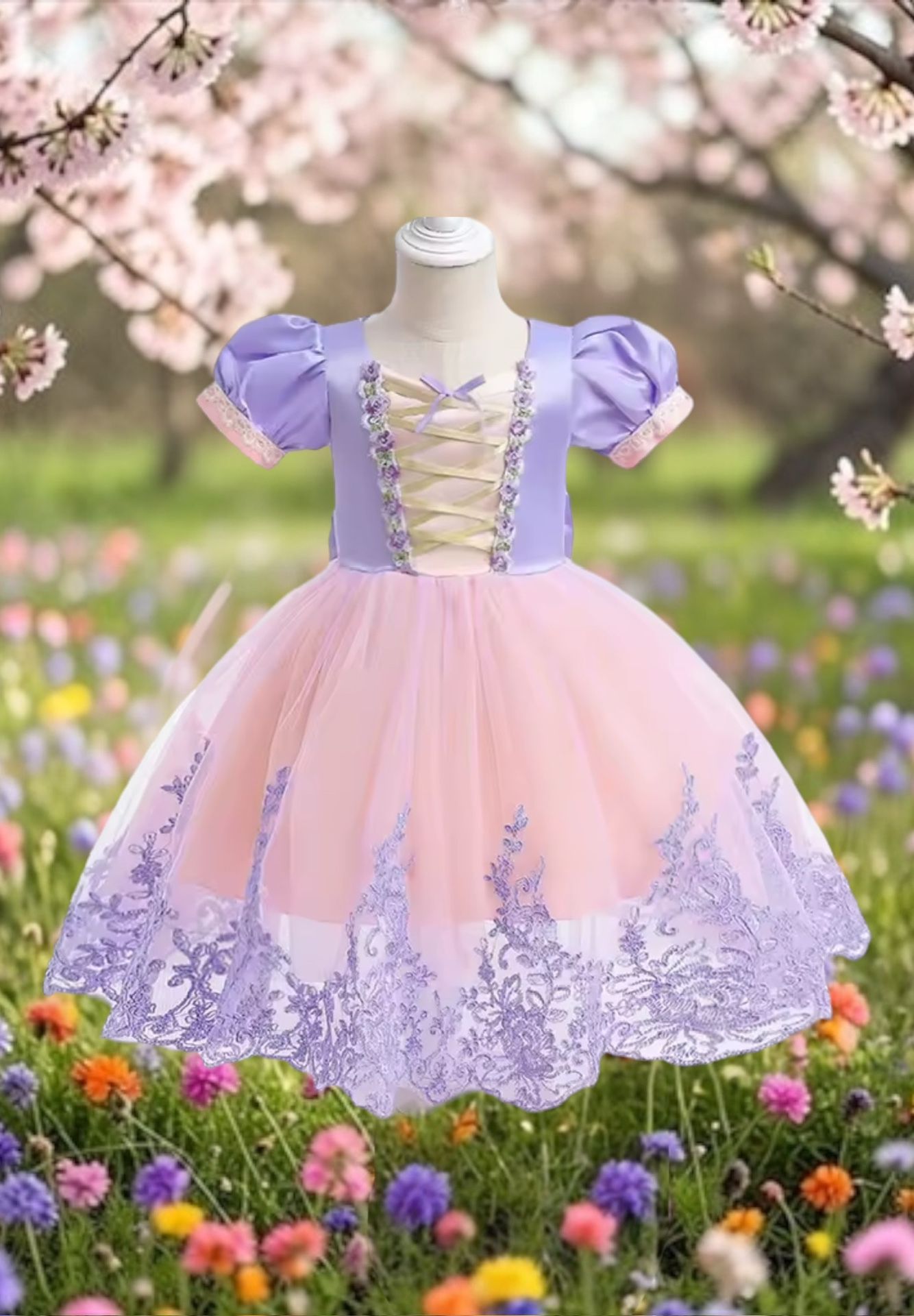 Pink and purple princess dress. ***Dress shown has a petticoat underneath to give the dress fullness. If you would like to purchase a petticoat I have a variety of styles, colors and sizes. The price range is between $16-$25 depending on the style, fullness and length***