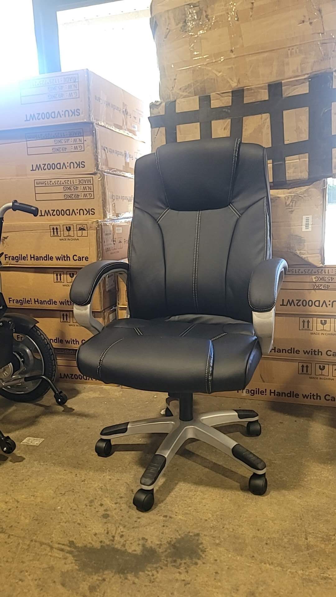 High Back Office Chair, Adjustable Height, Tilt, Swivel, Padded Seat, Bonded Leather, Wheels, Black $90