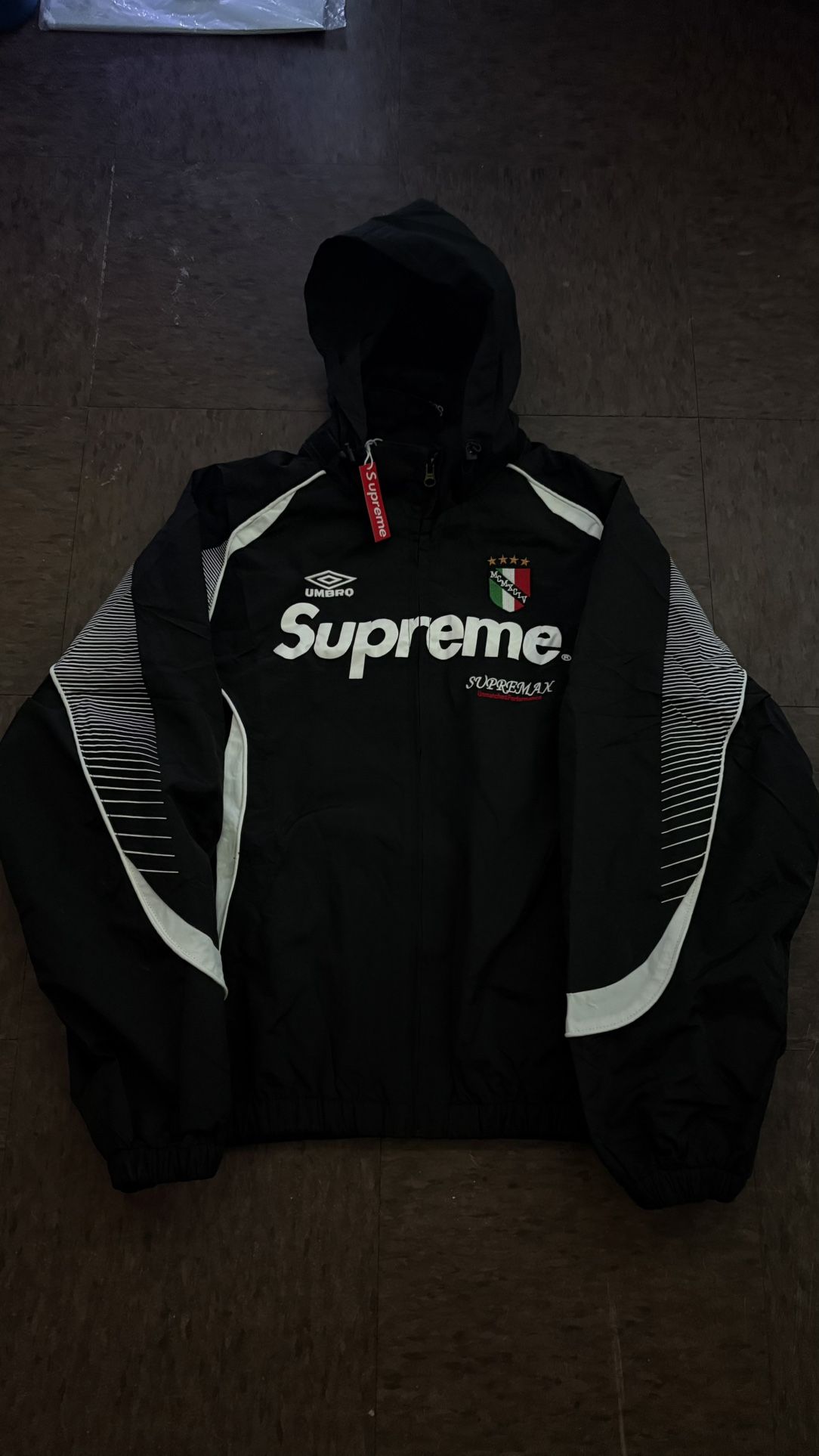 👔Supreme x umbro zip 🤝Delivery and meetups 📲700+ retail selling for 120 ✅New in bag with tags 🏷️Mens medium Got medium and small
