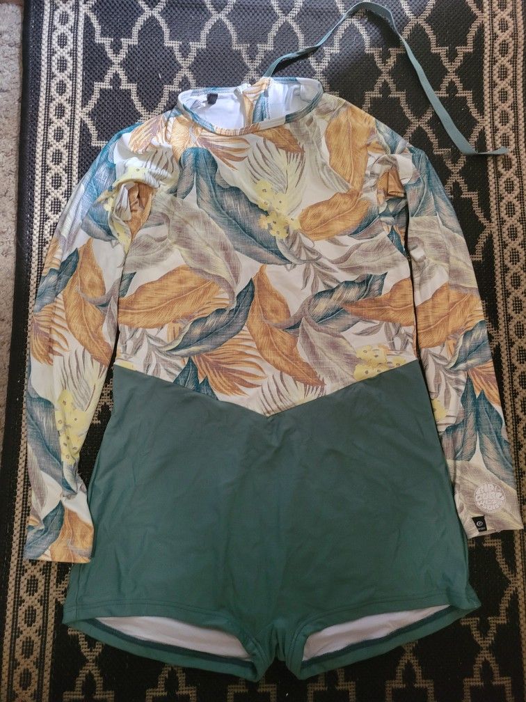 Very cute full coverage swim suit. Brand-new, never been worn. From Rip Curl. Boy short bottoms. Long sleeves for extra coverage. $20